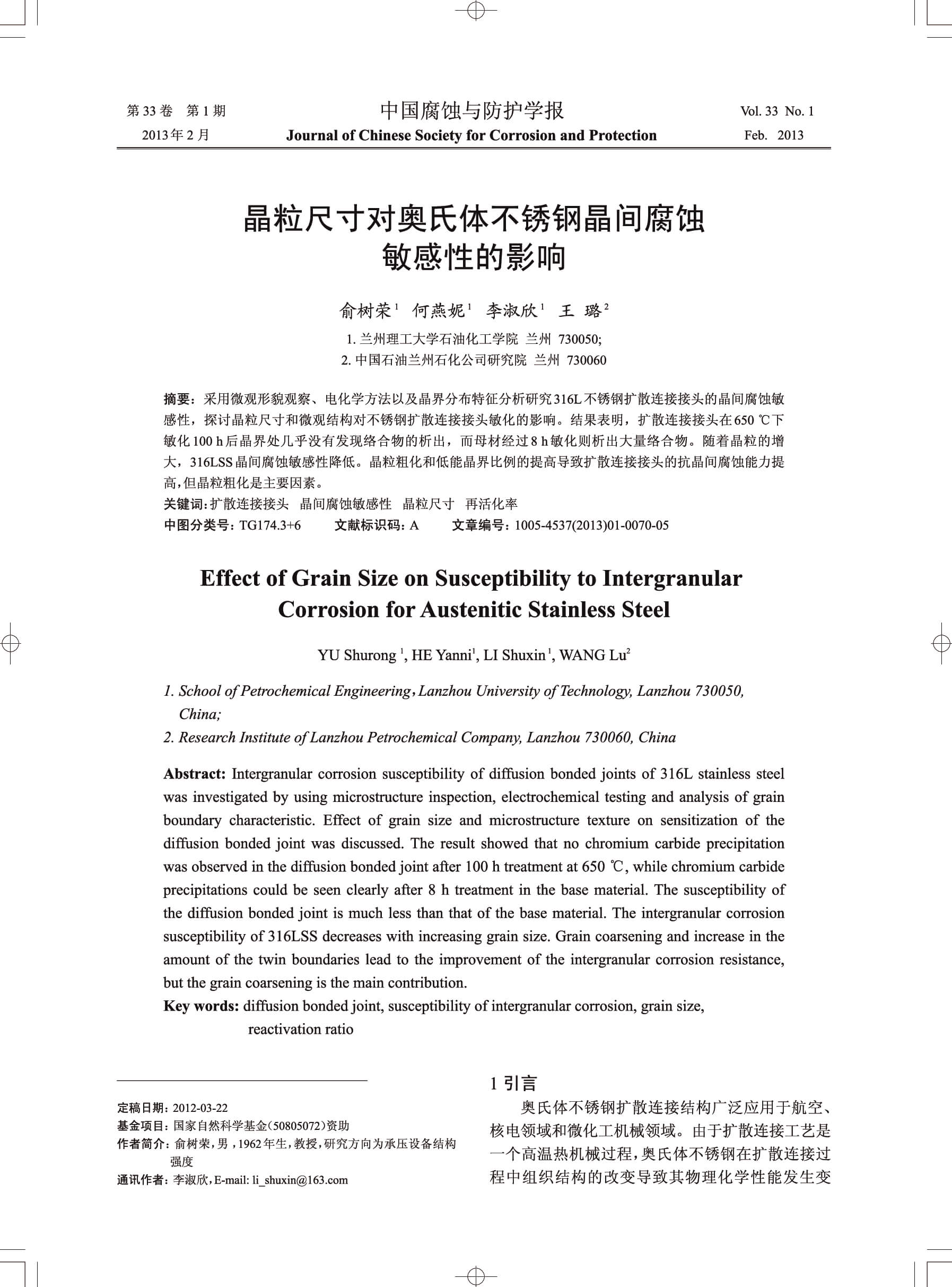 晶粒尺寸对奥氏体不锈钢晶间腐蚀敏感性的影响