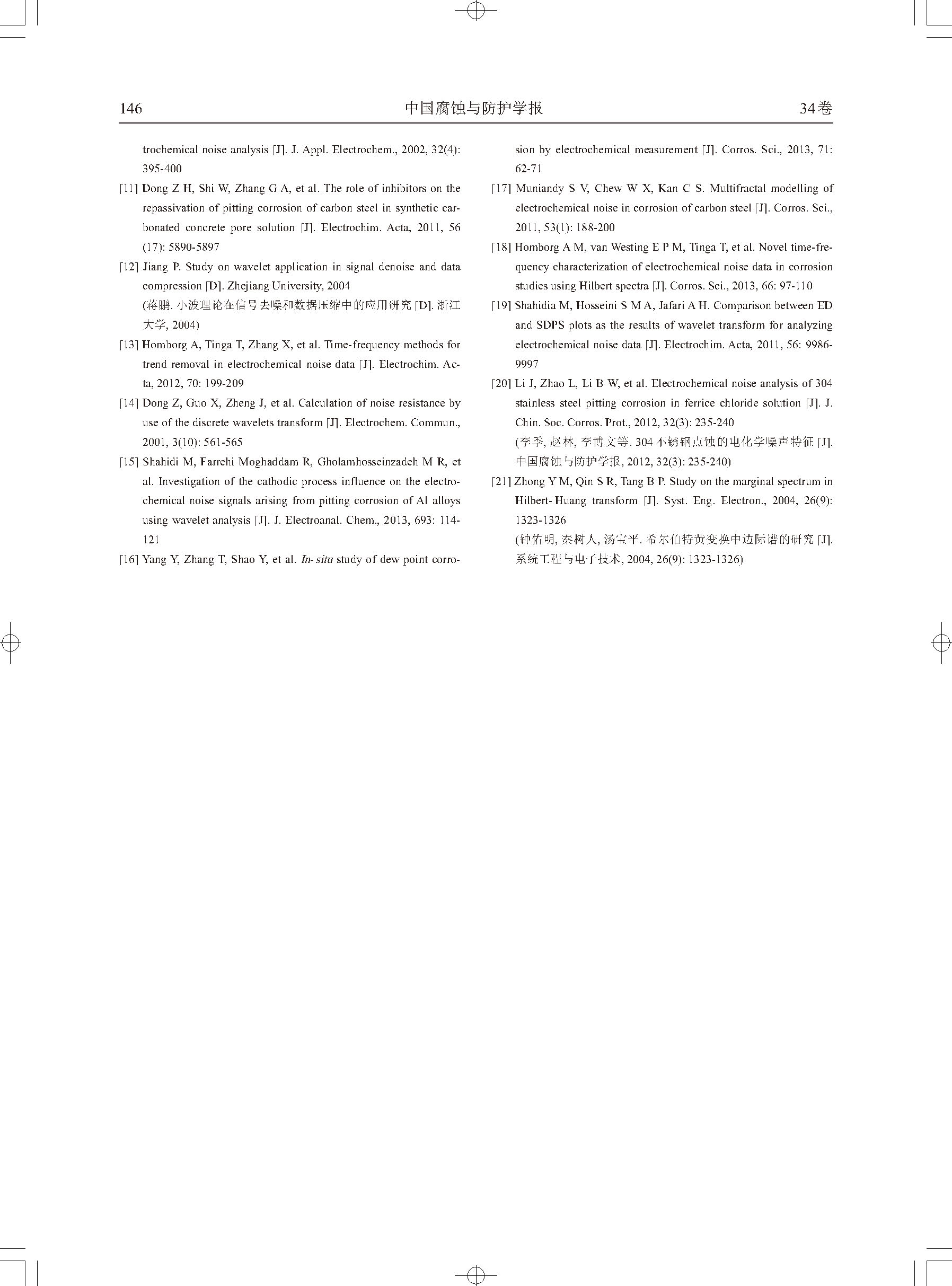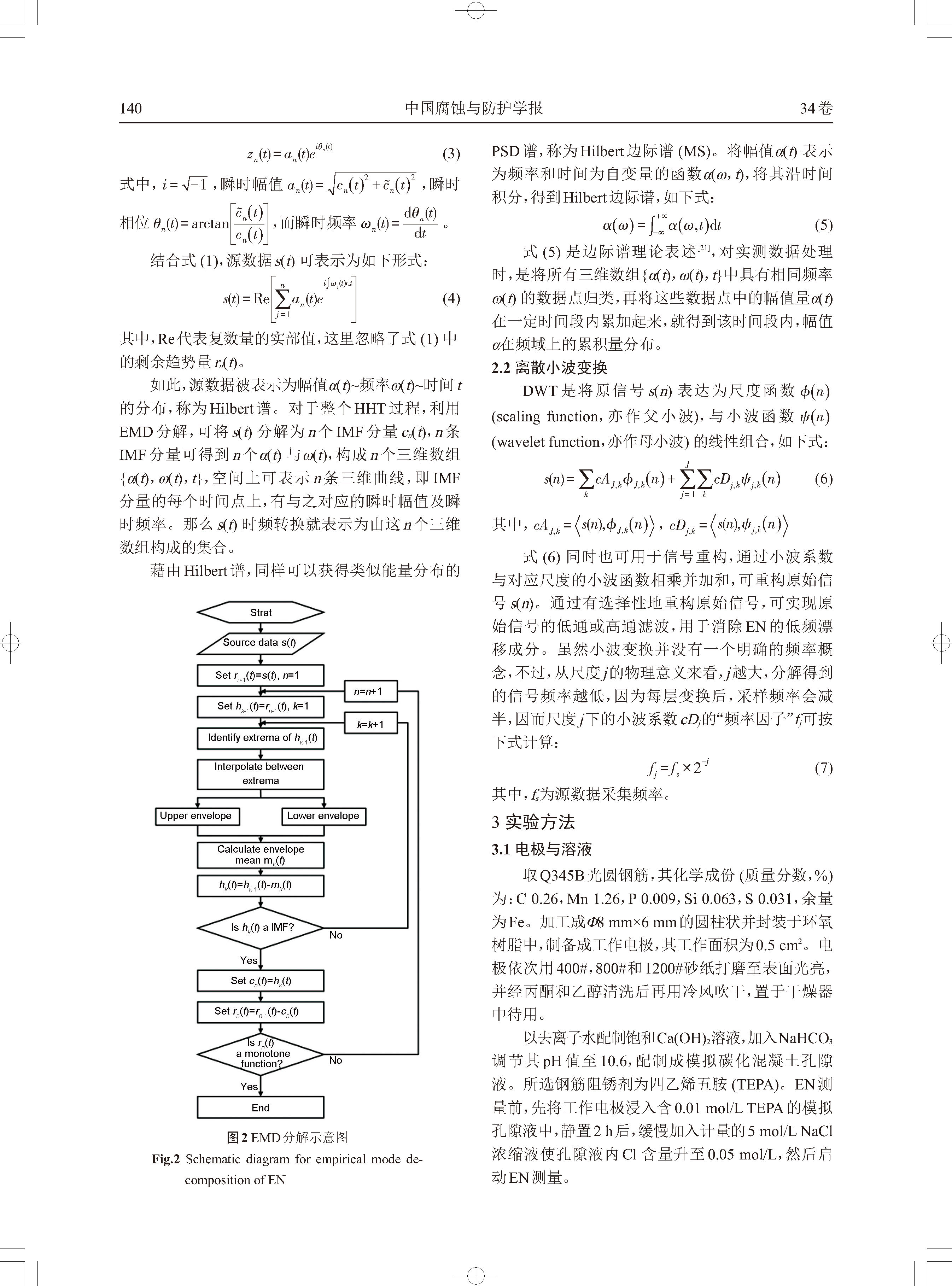 标签: 电化学噪声, 点蚀, Hilbert-Huang变换, 小波变换