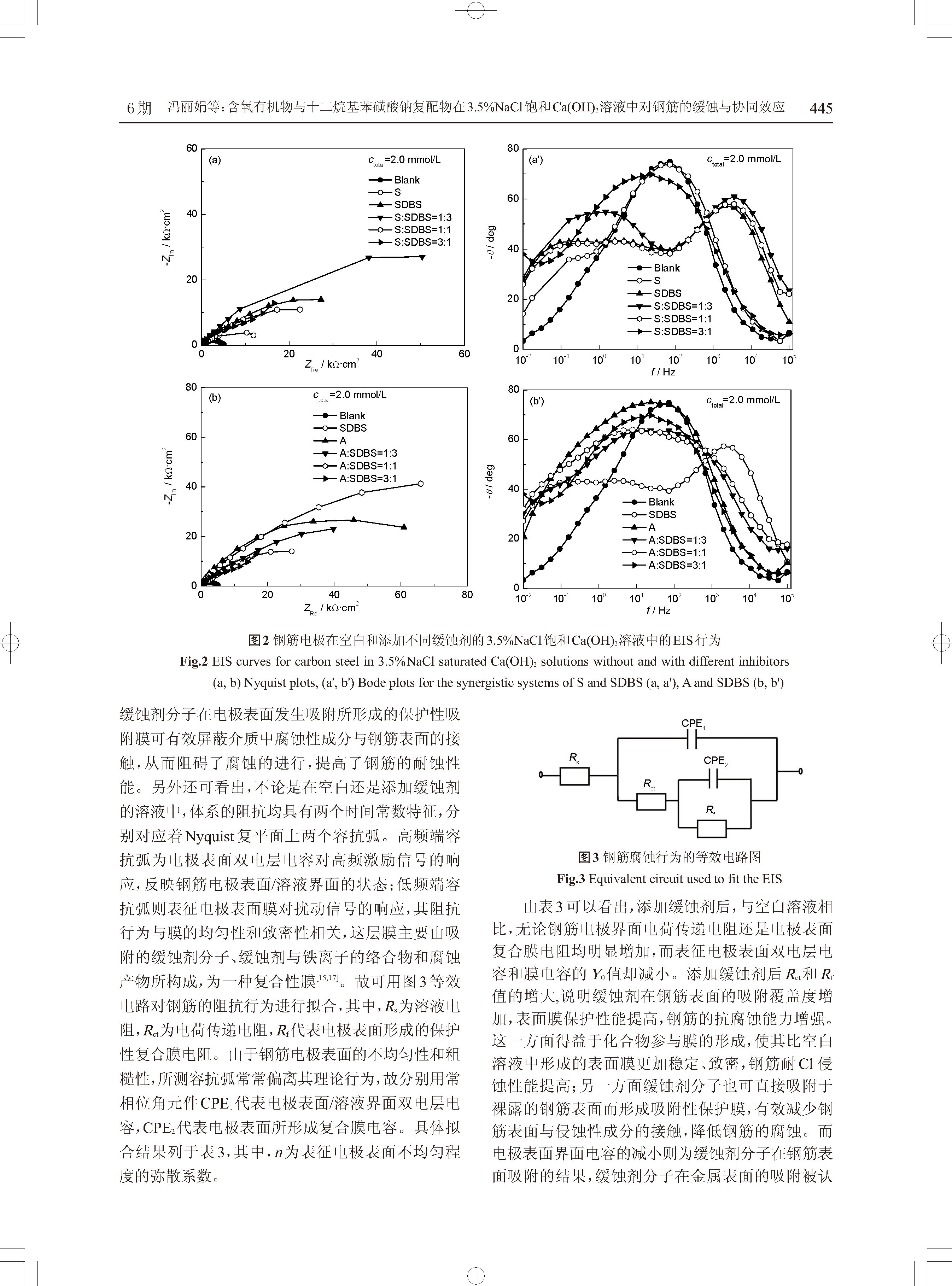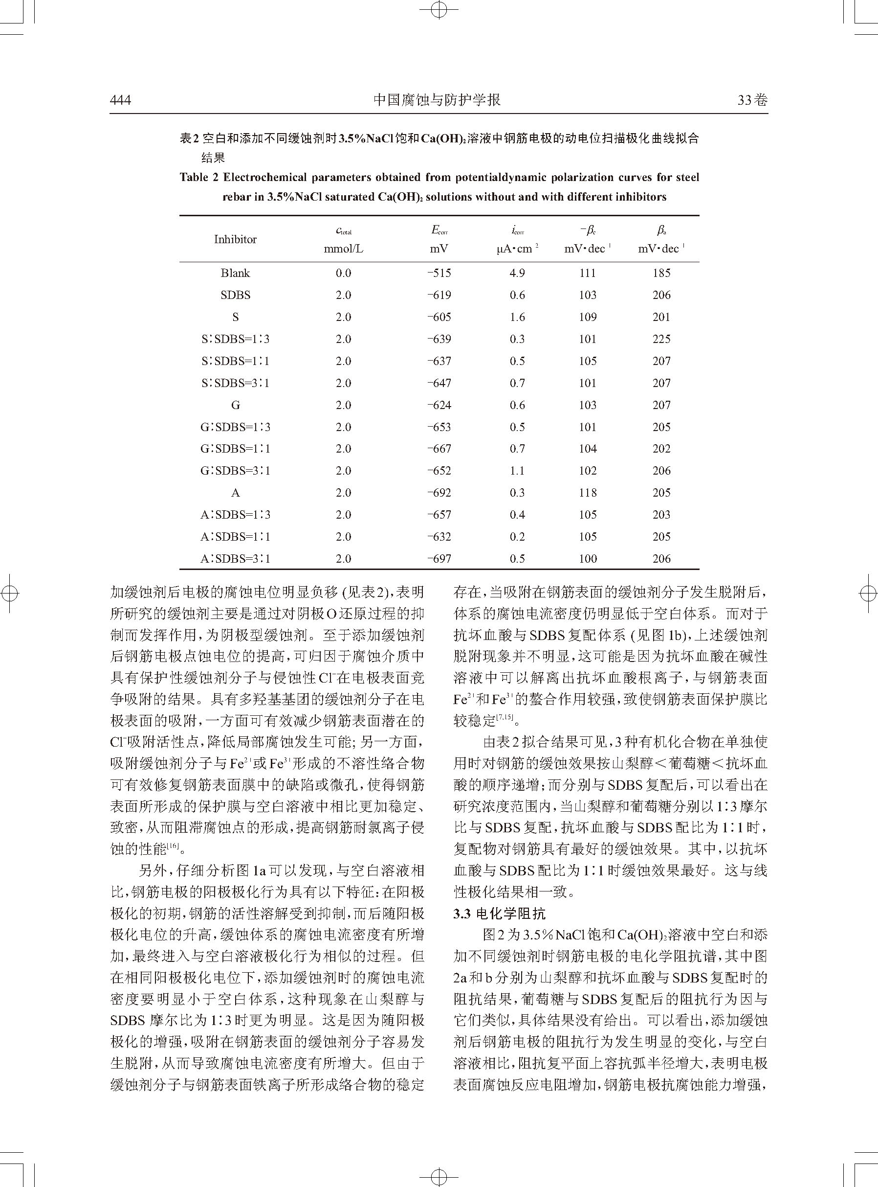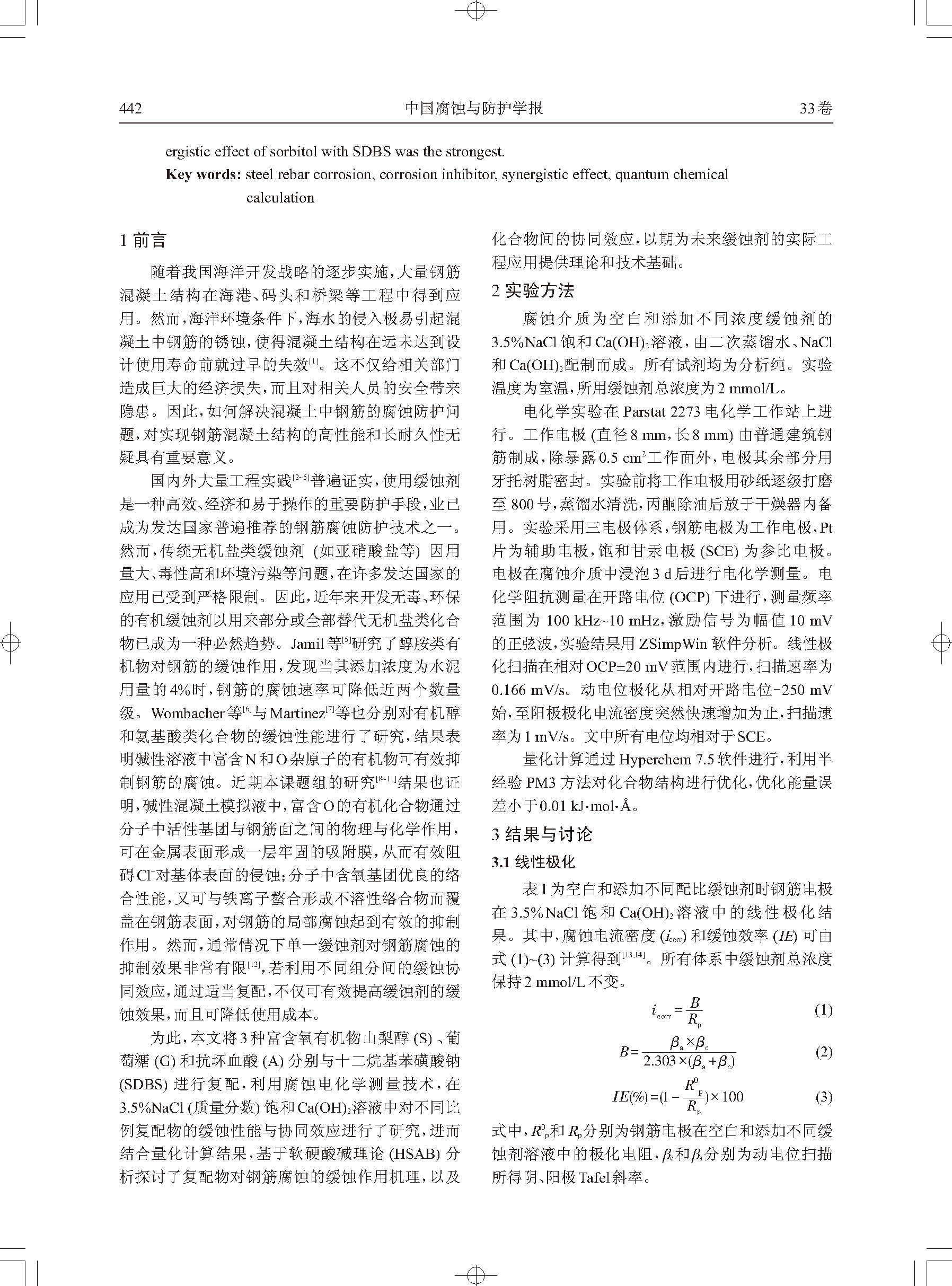 含氧有机物与十二烷基苯磺酸钠复配物在 3.5%NaCl饱和Ca(OH)2溶液中对钢筋的 缓蚀与协同效应