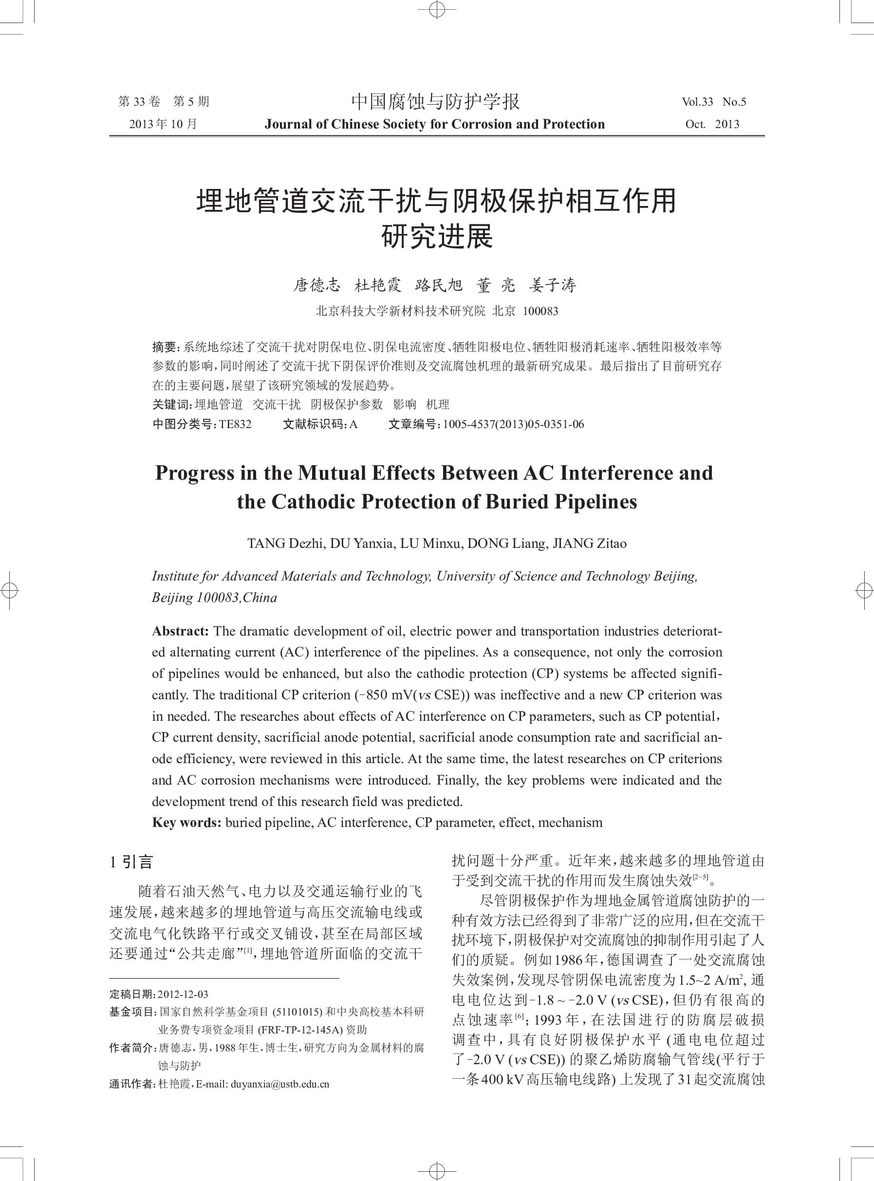 埋地管道交流干扰与阴极保护相互作用研究进展