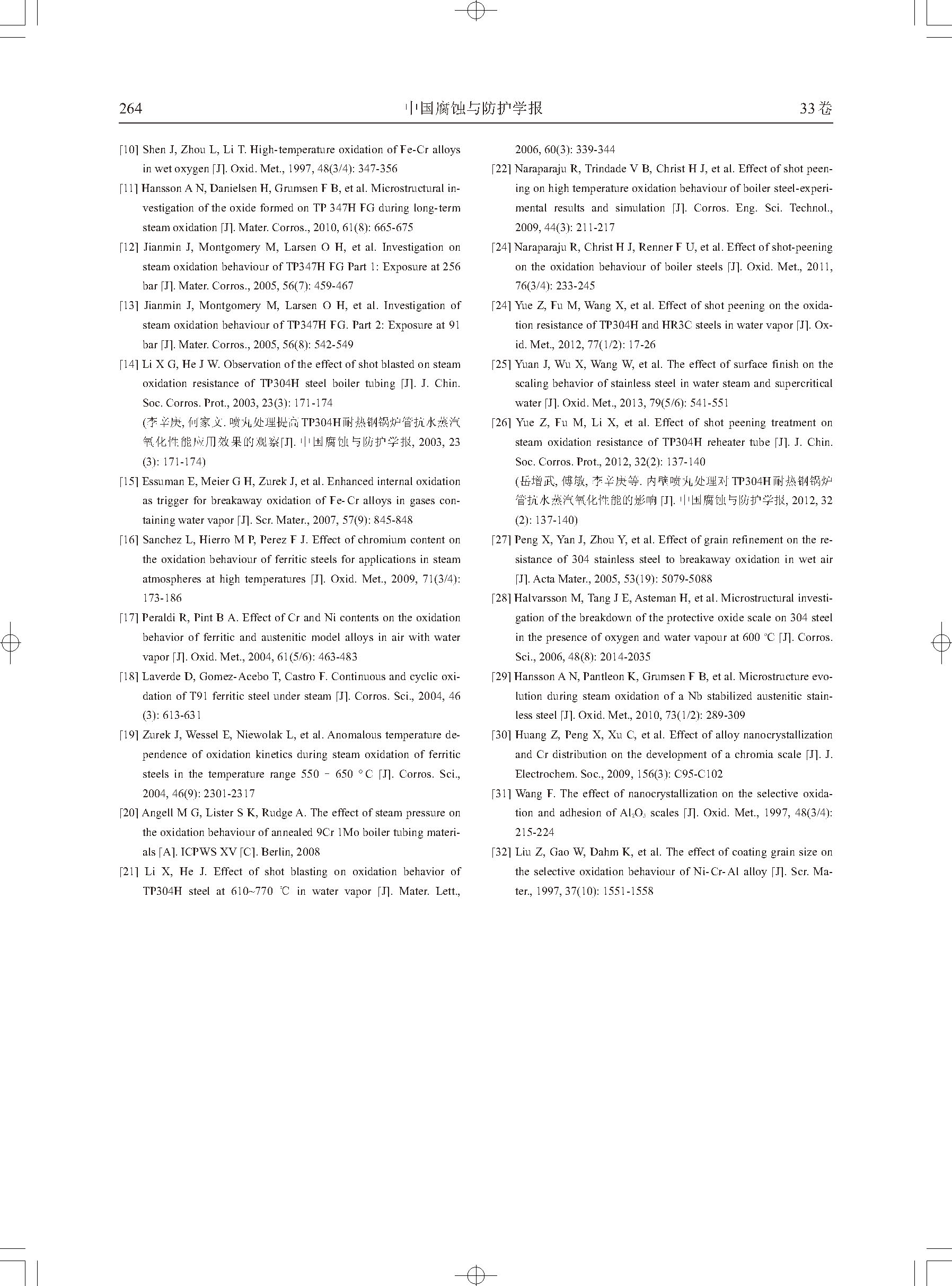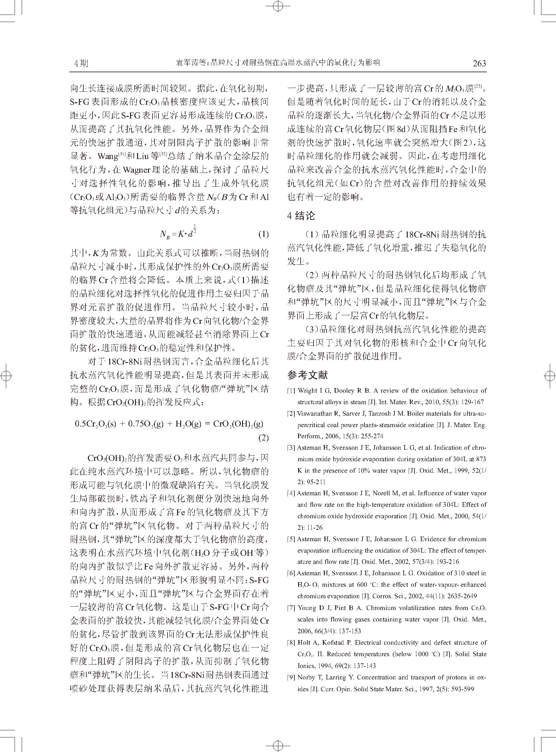 晶粒尺寸对耐热钢在高温水蒸汽中的氧化行为的影响