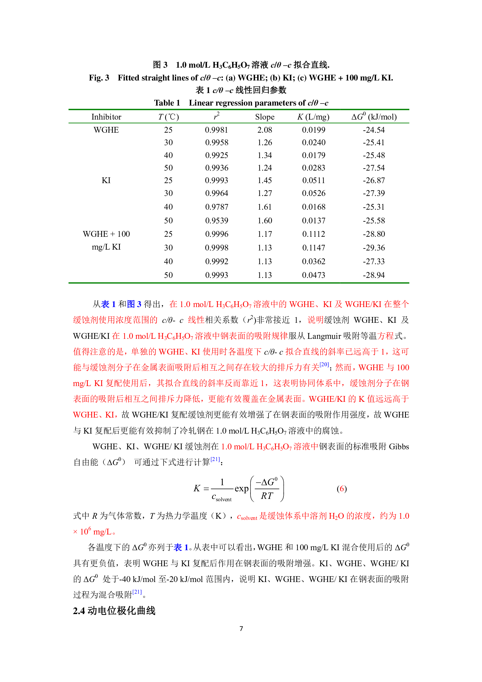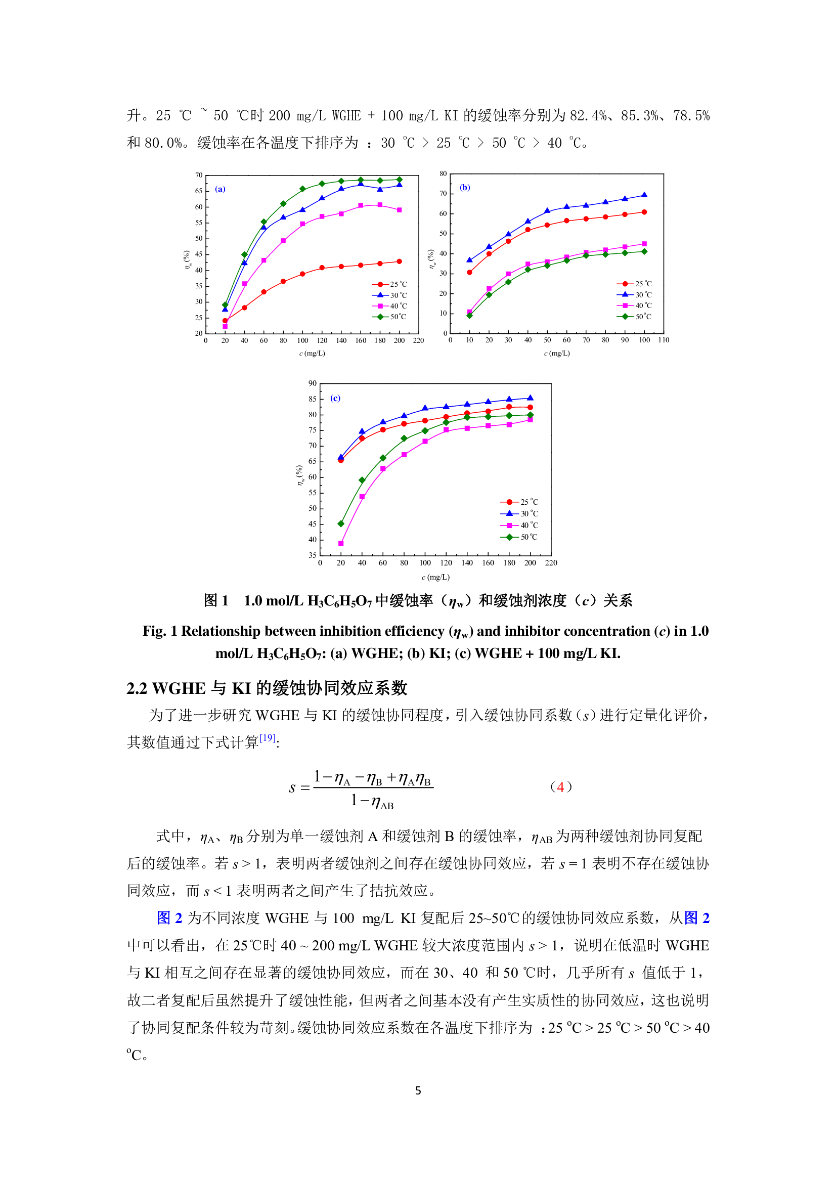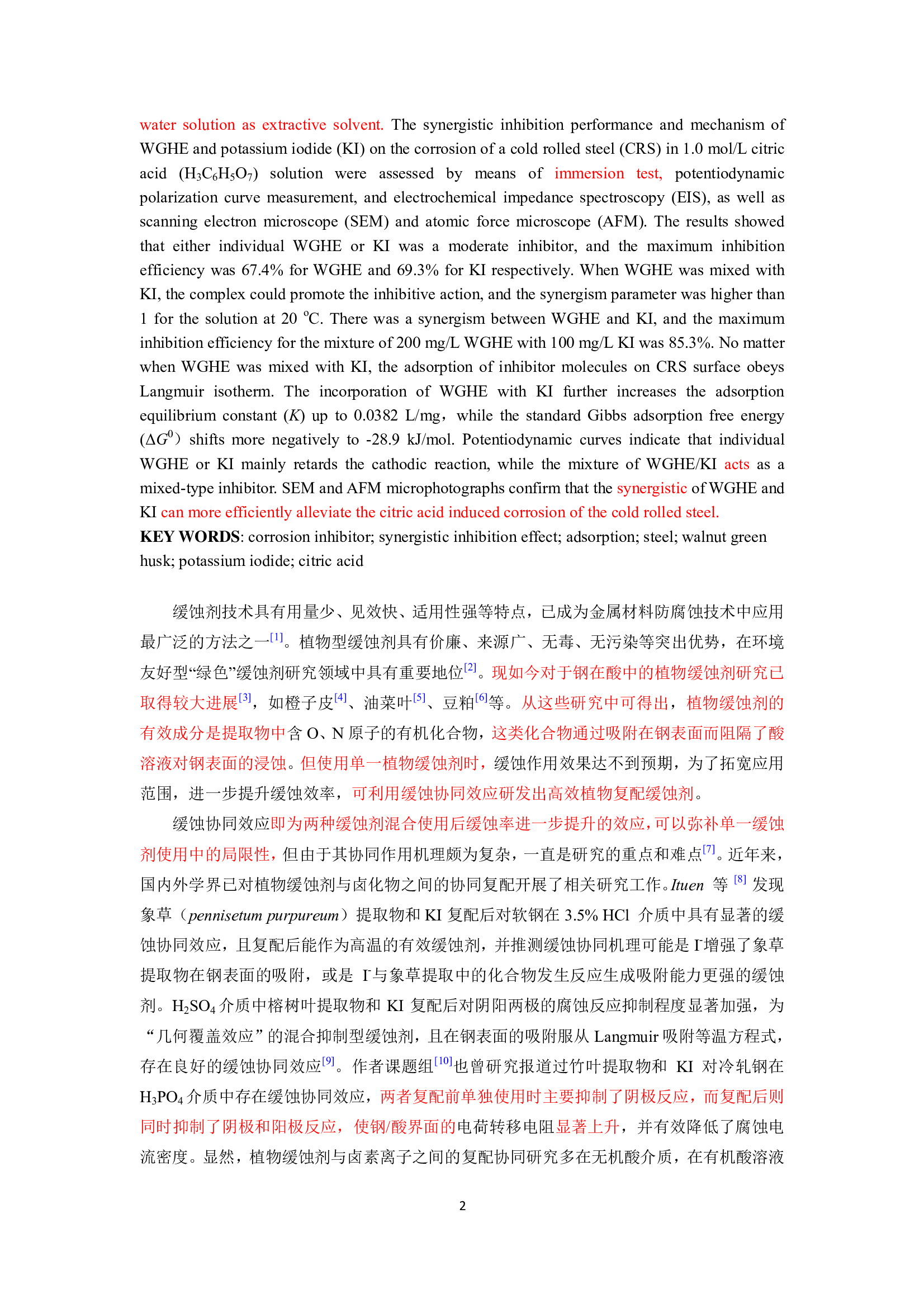 核桃青皮提取物与碘化钾对钢在柠檬酸中的缓蚀协同效应