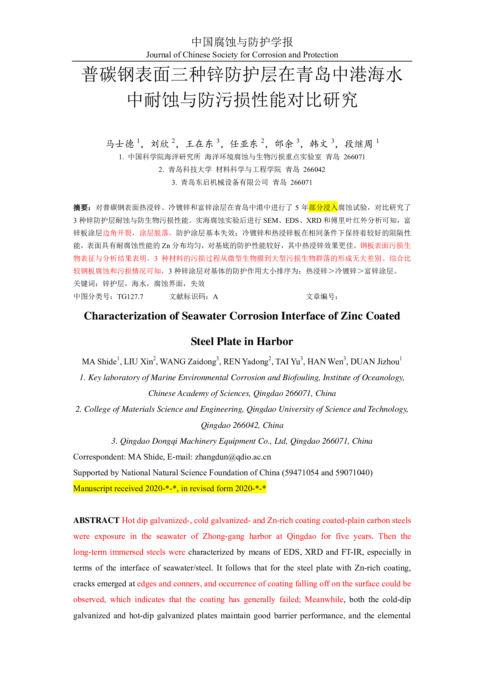 2021-06-07 16:38:35 作者:马士德,刘欣,王在东,任亚东,邰余,韩文,段继周 来源:中国腐蚀与防护学报 分享至: