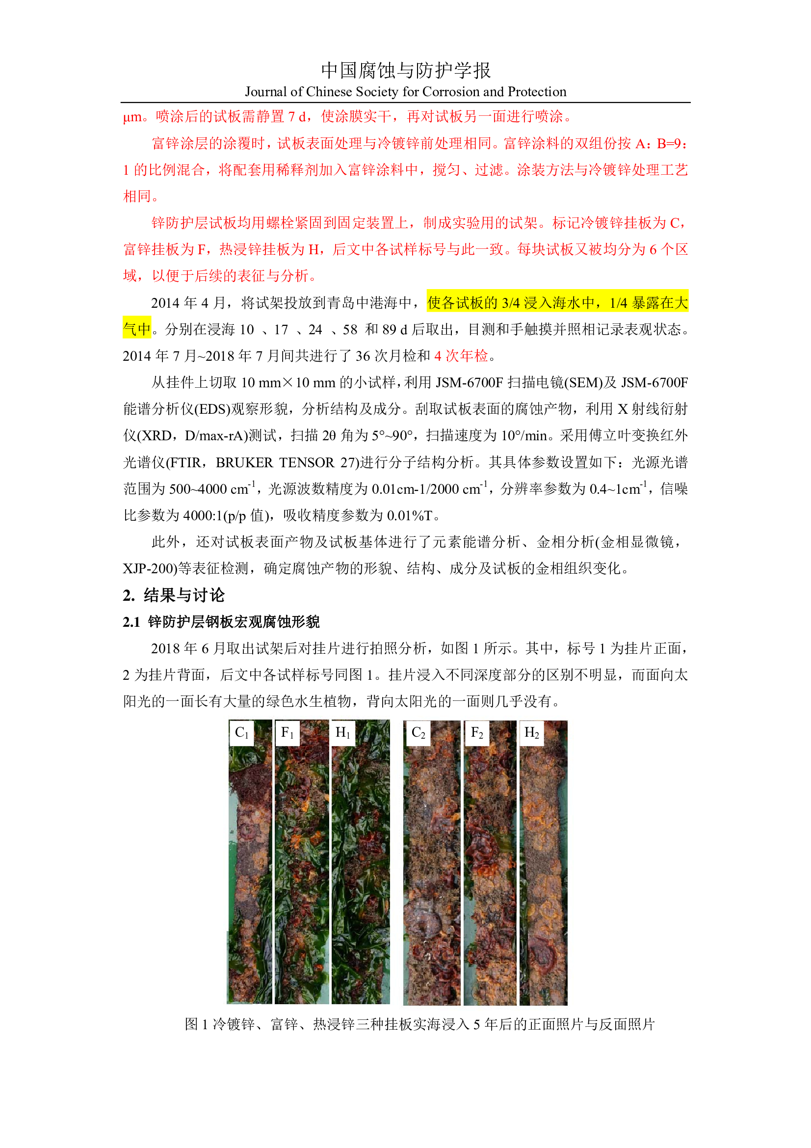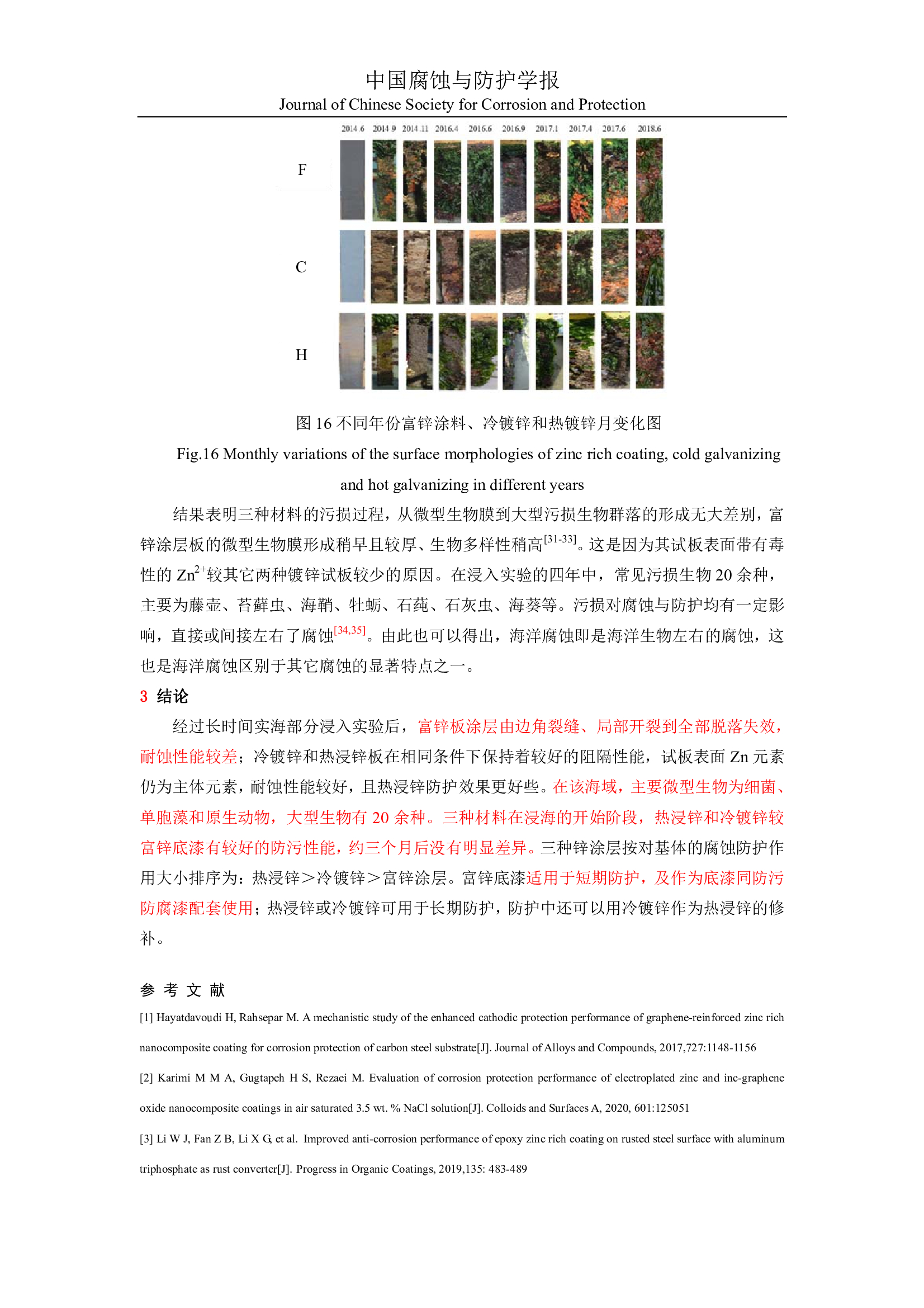 普碳钢表面三种锌防护层在青岛中港海水中耐蚀与防污损性能对比研究