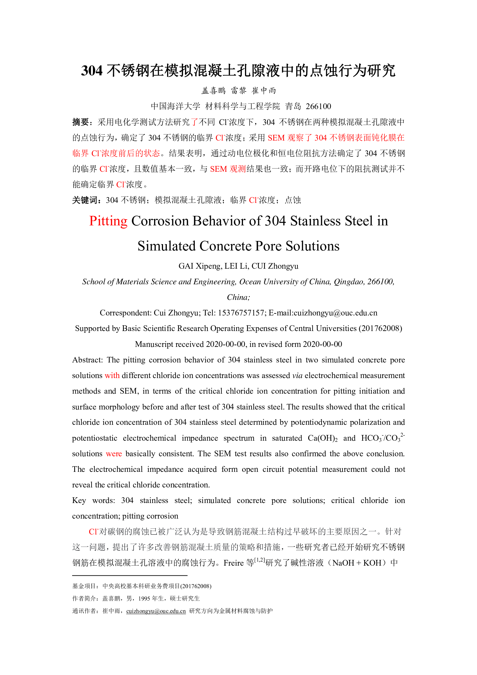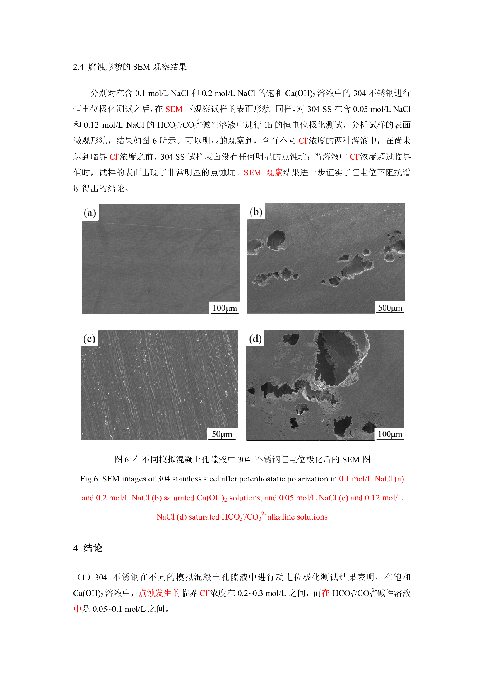 304 不锈钢在模拟混凝土孔隙液中的点蚀行为研究