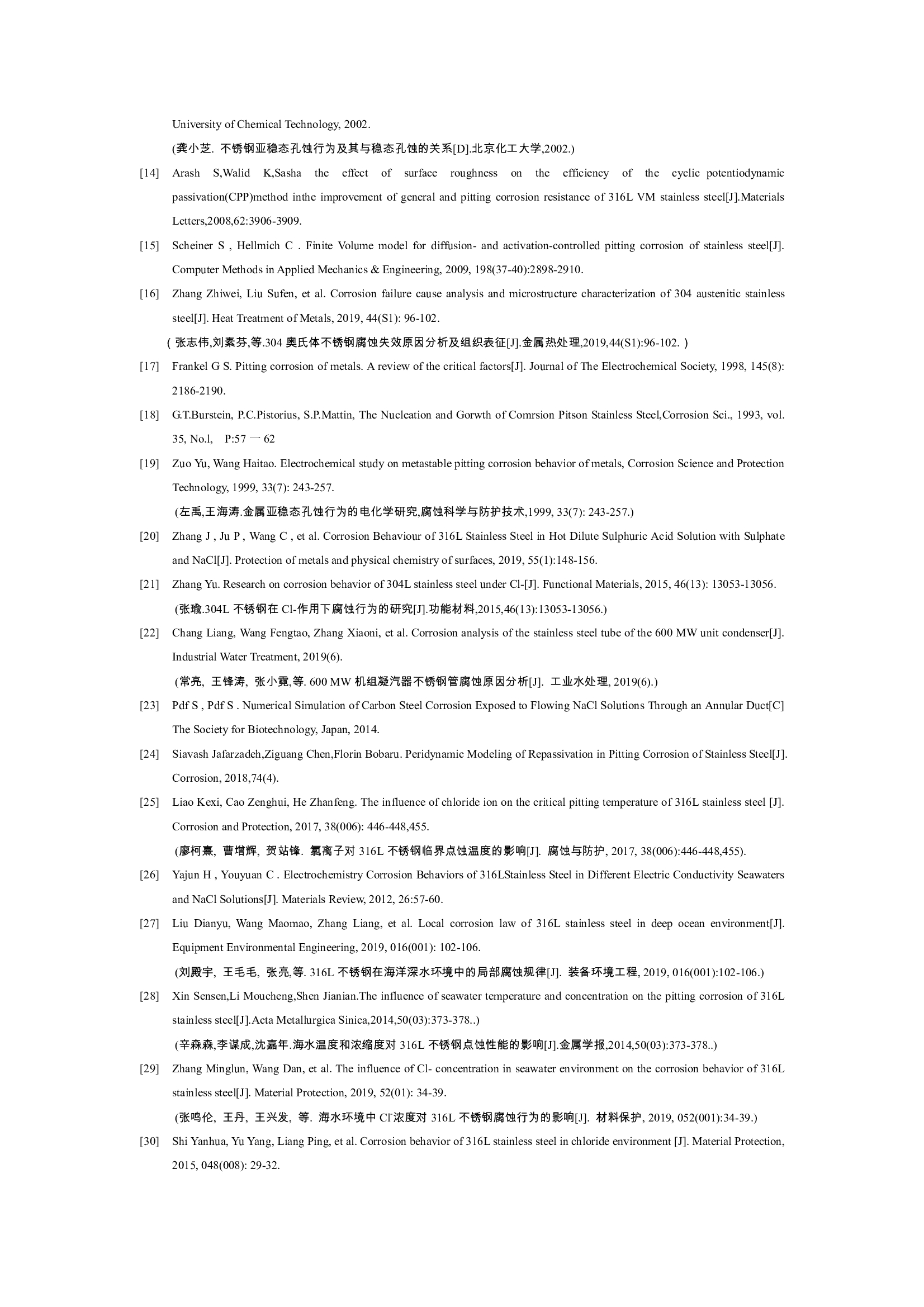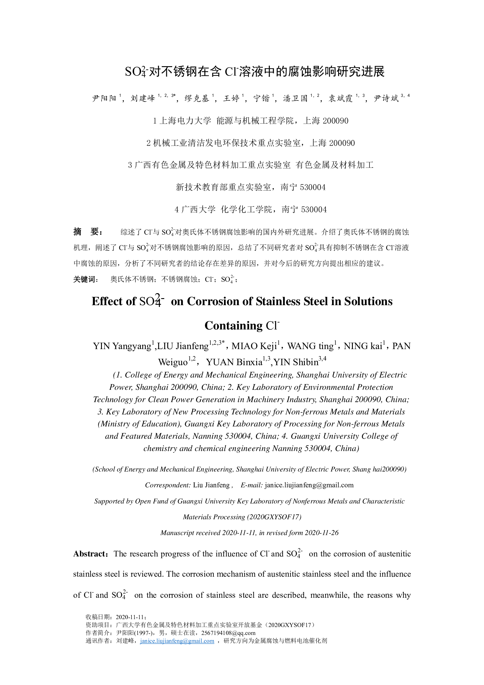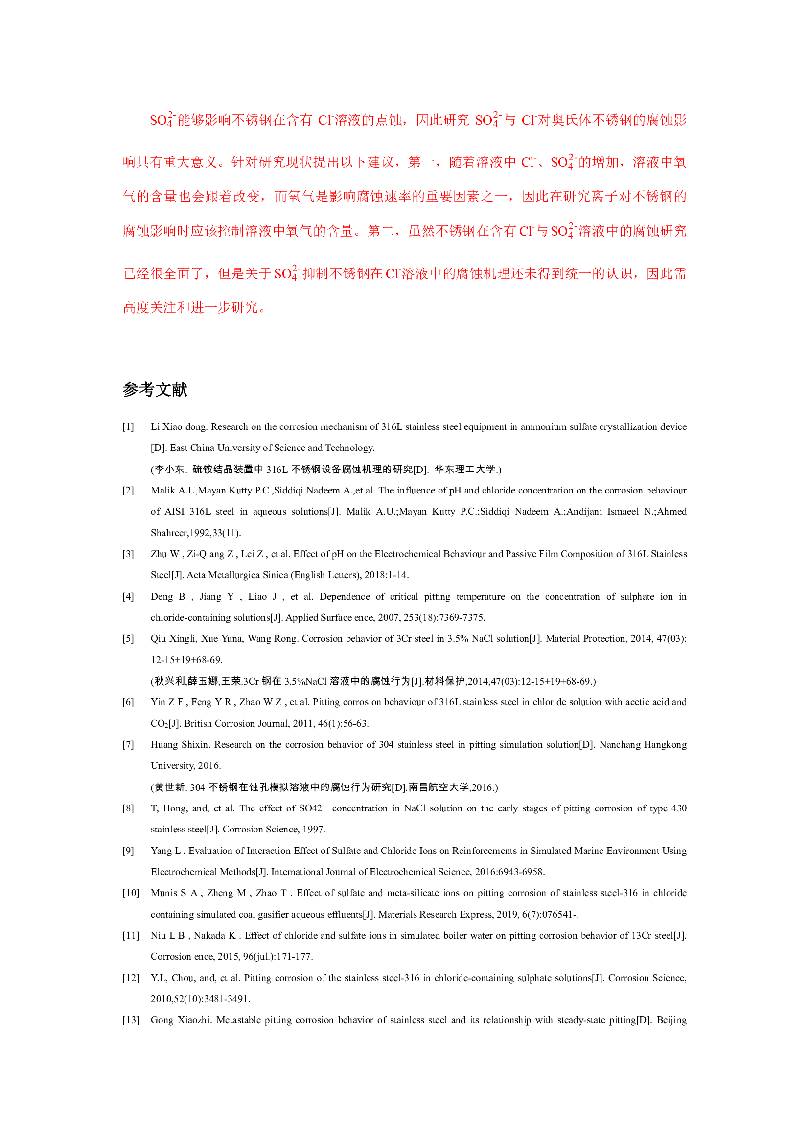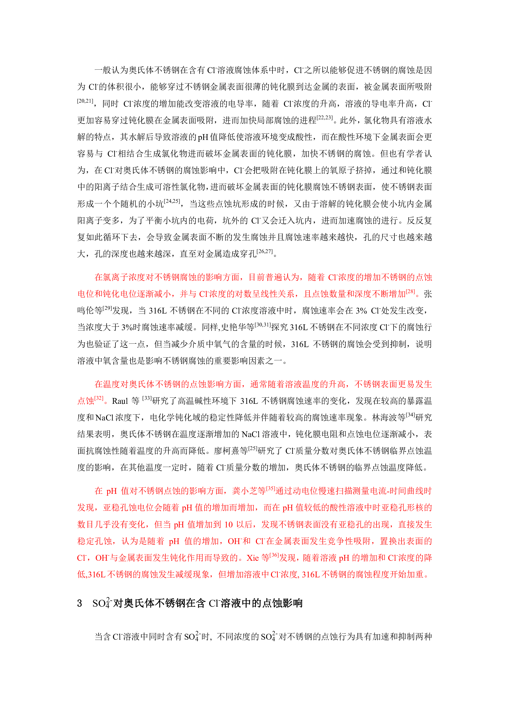 SO2- 4 对不锈钢在含 Cl溶液中的腐蚀影响研究进展