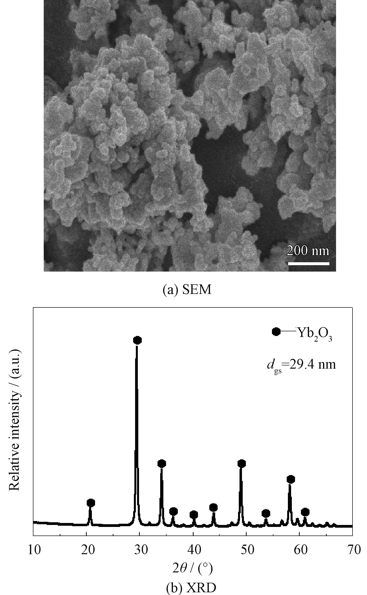Fig.3 Yb2O3 morphology and XRD patterns