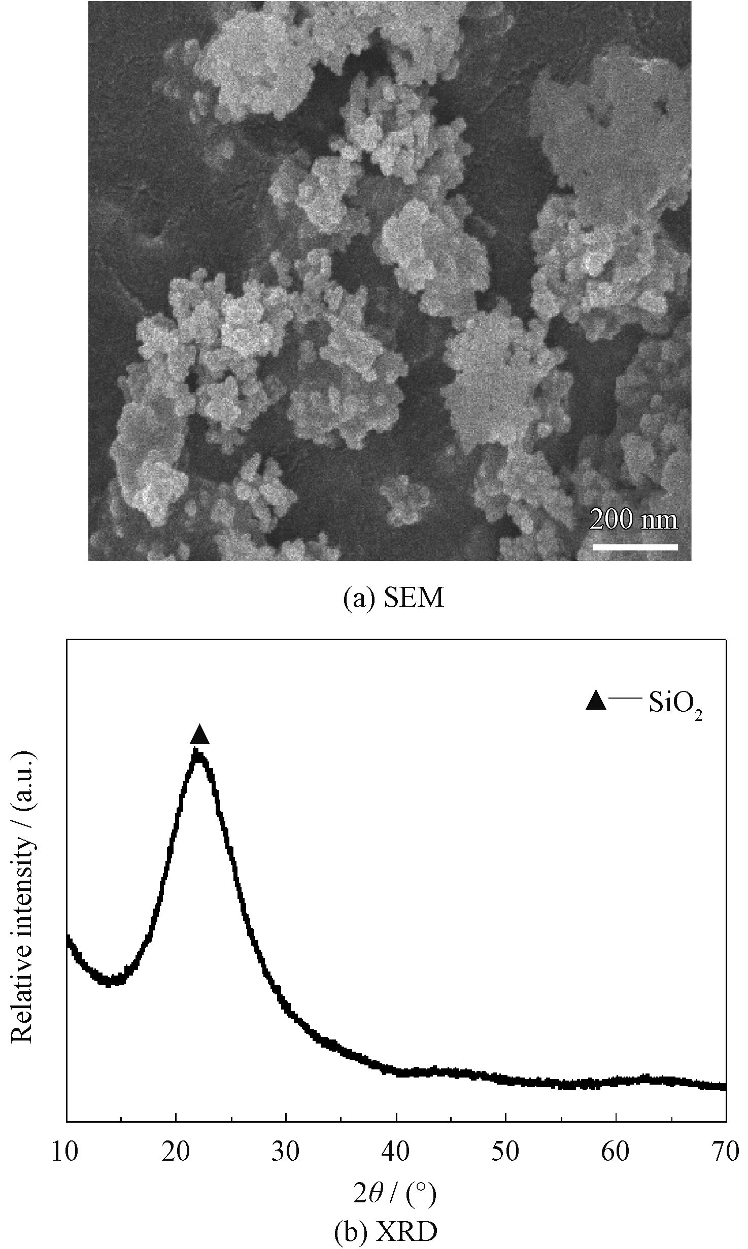 图2 SiO2 形貌及XRD图谱
