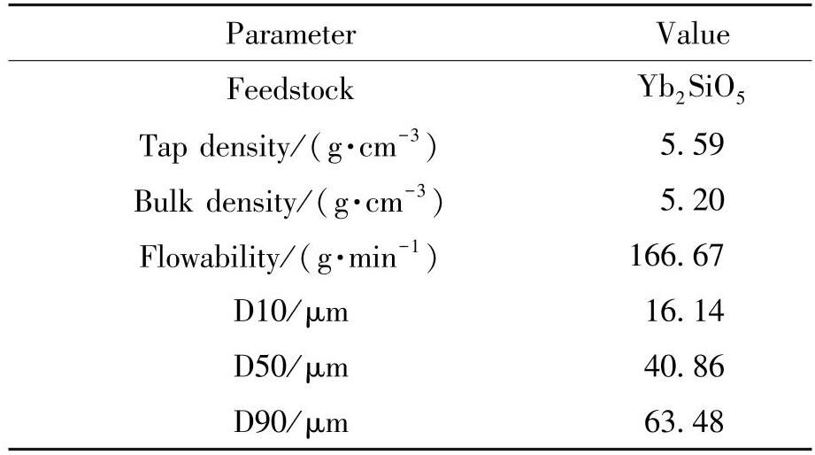 采用丹东百特BT-301型振实密度测试仪测量了粉体喂料的松装密度和粉体的振实密度;采用LDBT-200/FL4-1型霍尔流量计测试了粉体喂料的流动性,漏斗孔径为5mm。所有测试重复3次,取平均值。