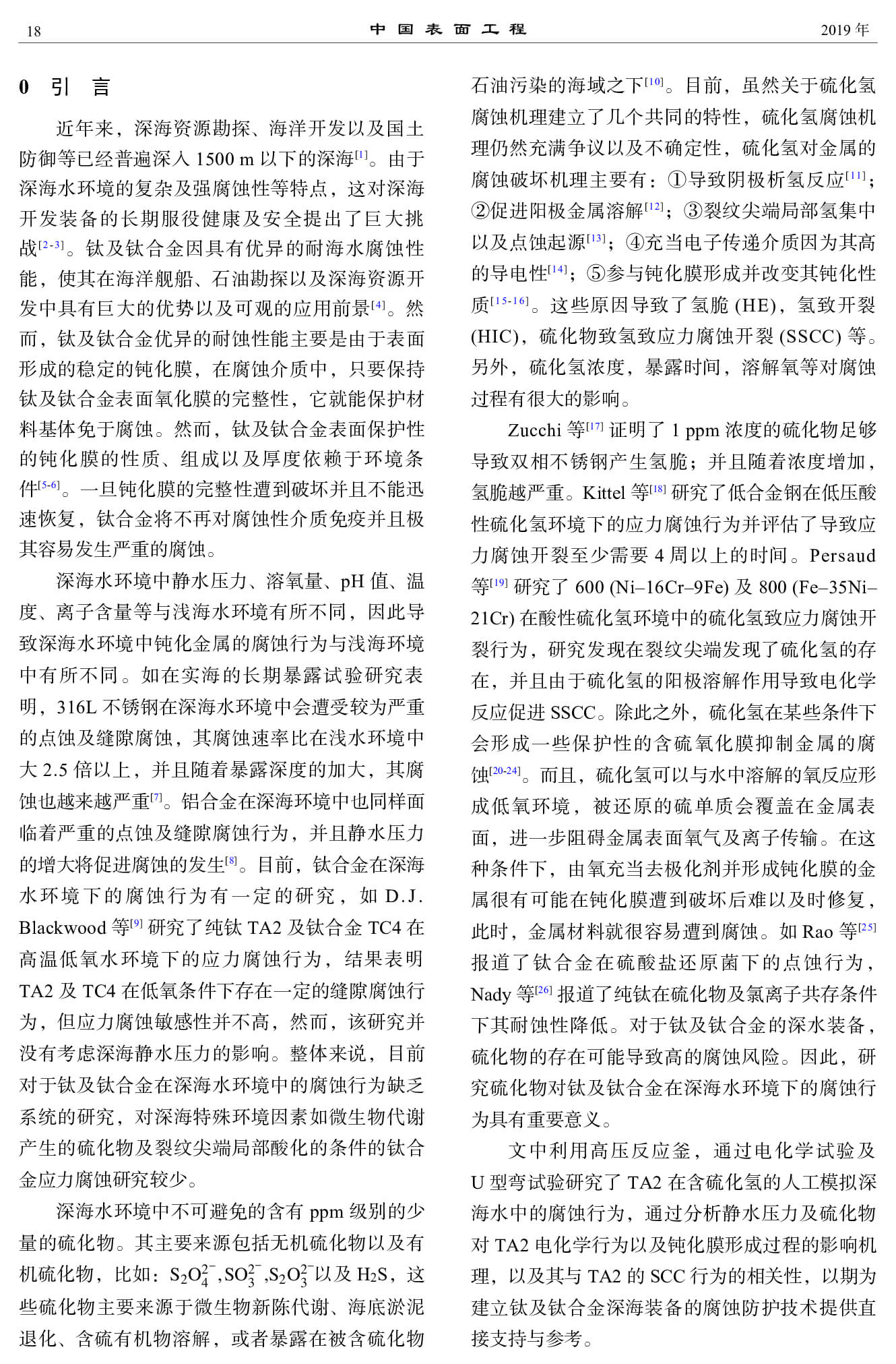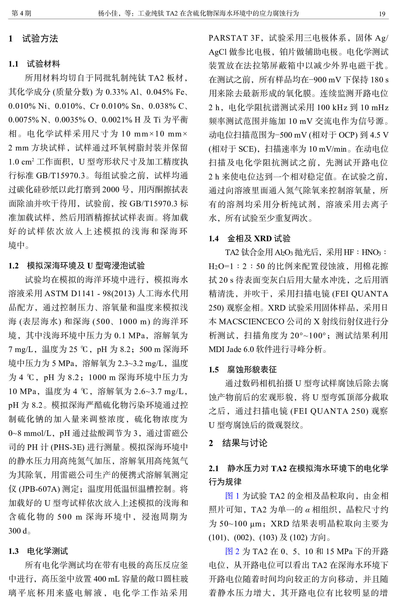 工业纯钛 TA2 在含硫化物深海水环境中的应力腐蚀行为