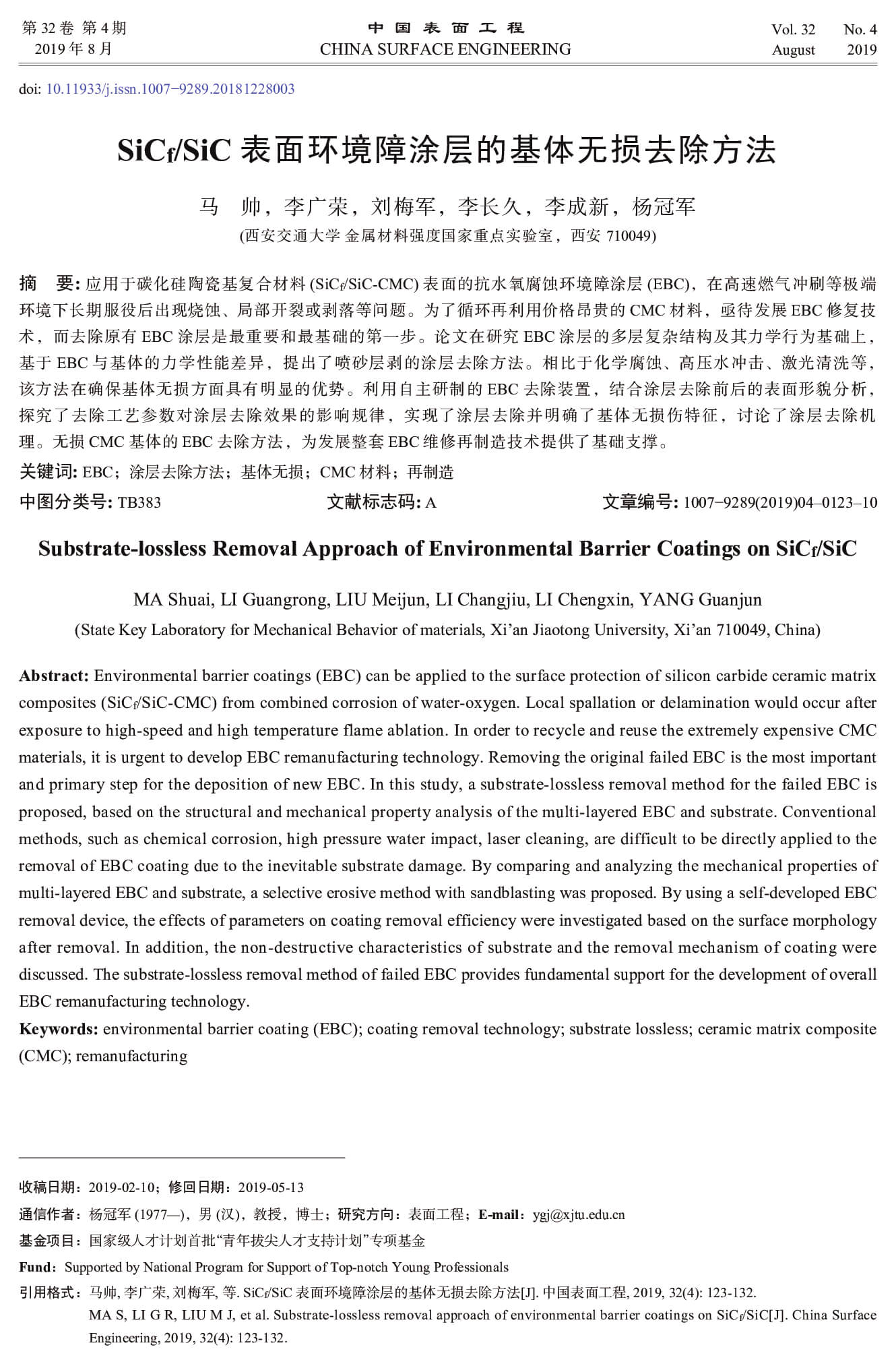 2021-06-28 15:47:14 作者:马帅,李广荣,刘梅军,李长久,李成新,杨冠军 来源:中国表面工程 分享至: