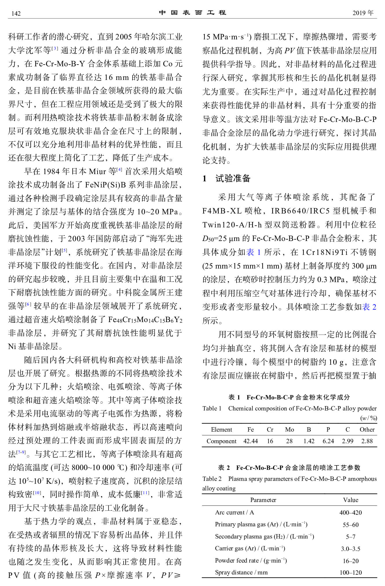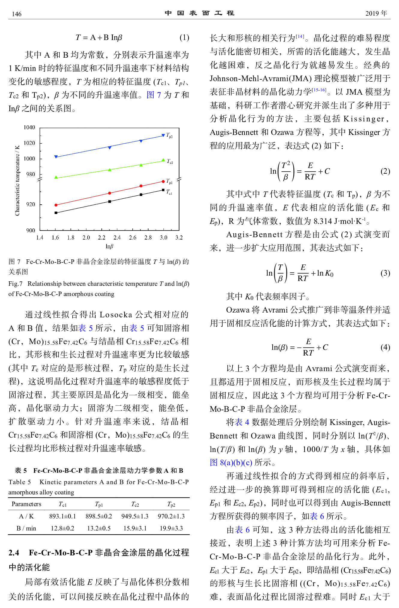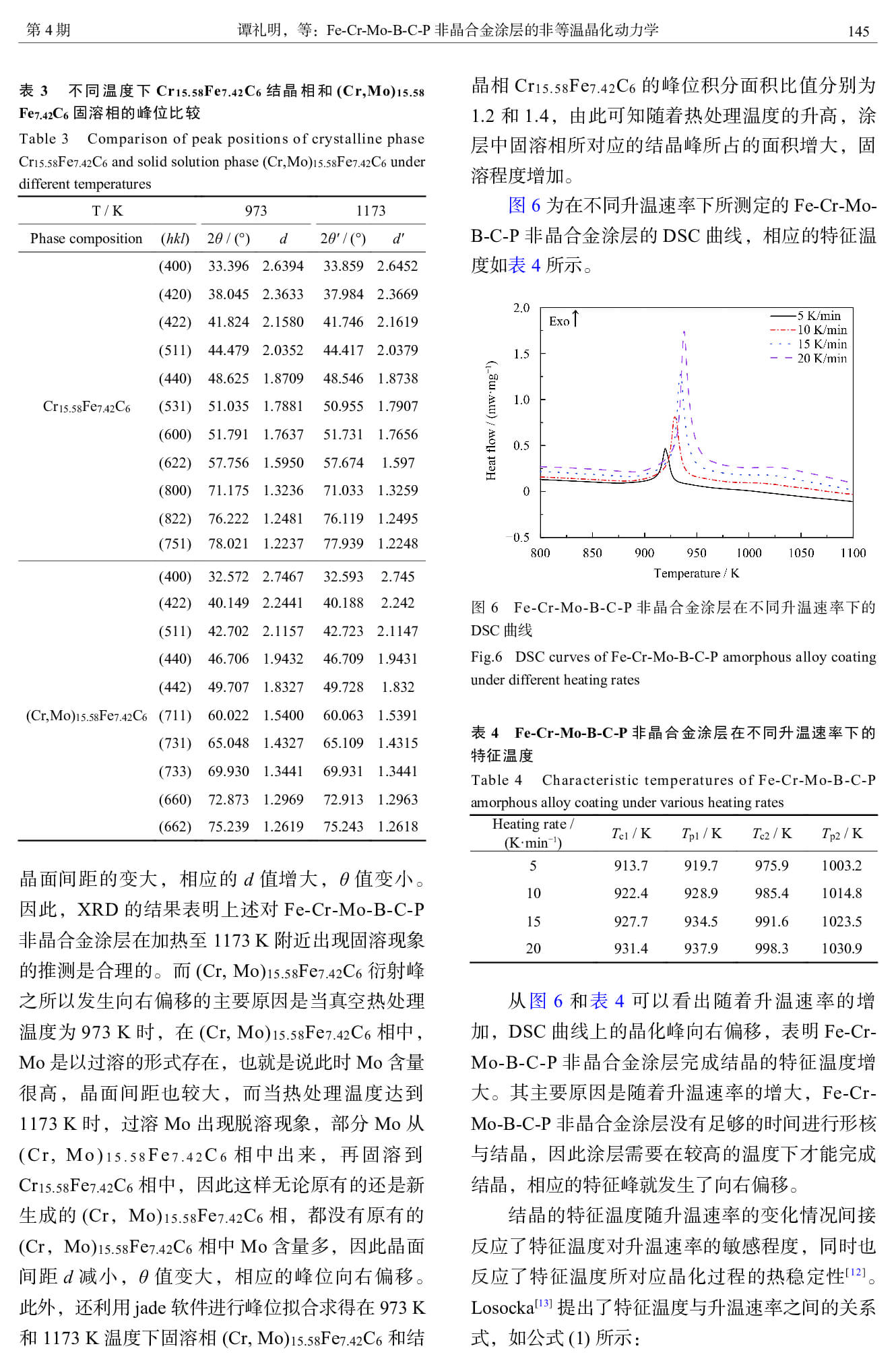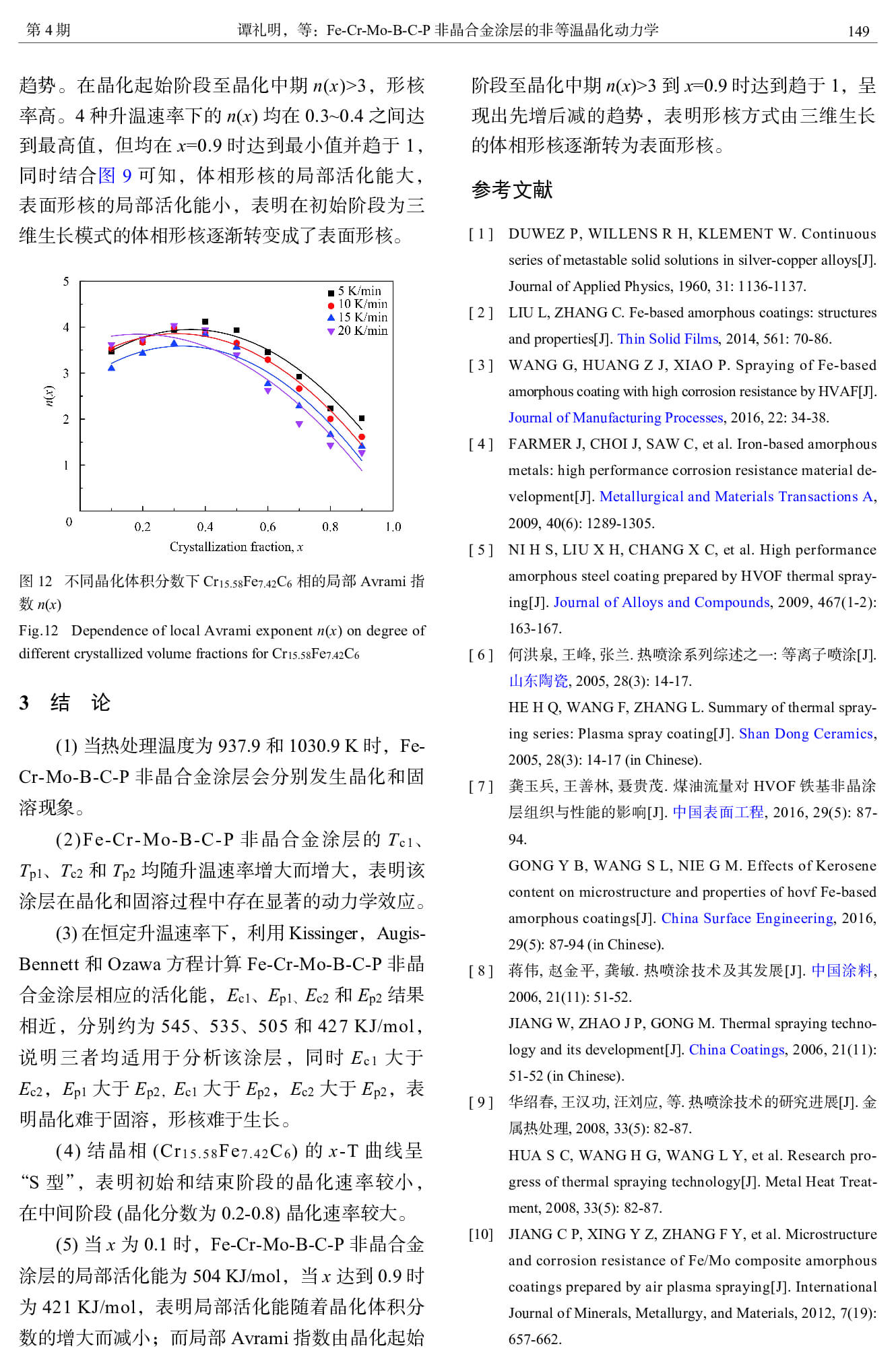 Fe-Cr-Mo-B-C-P 非晶合金涂层的非等温晶化动力学