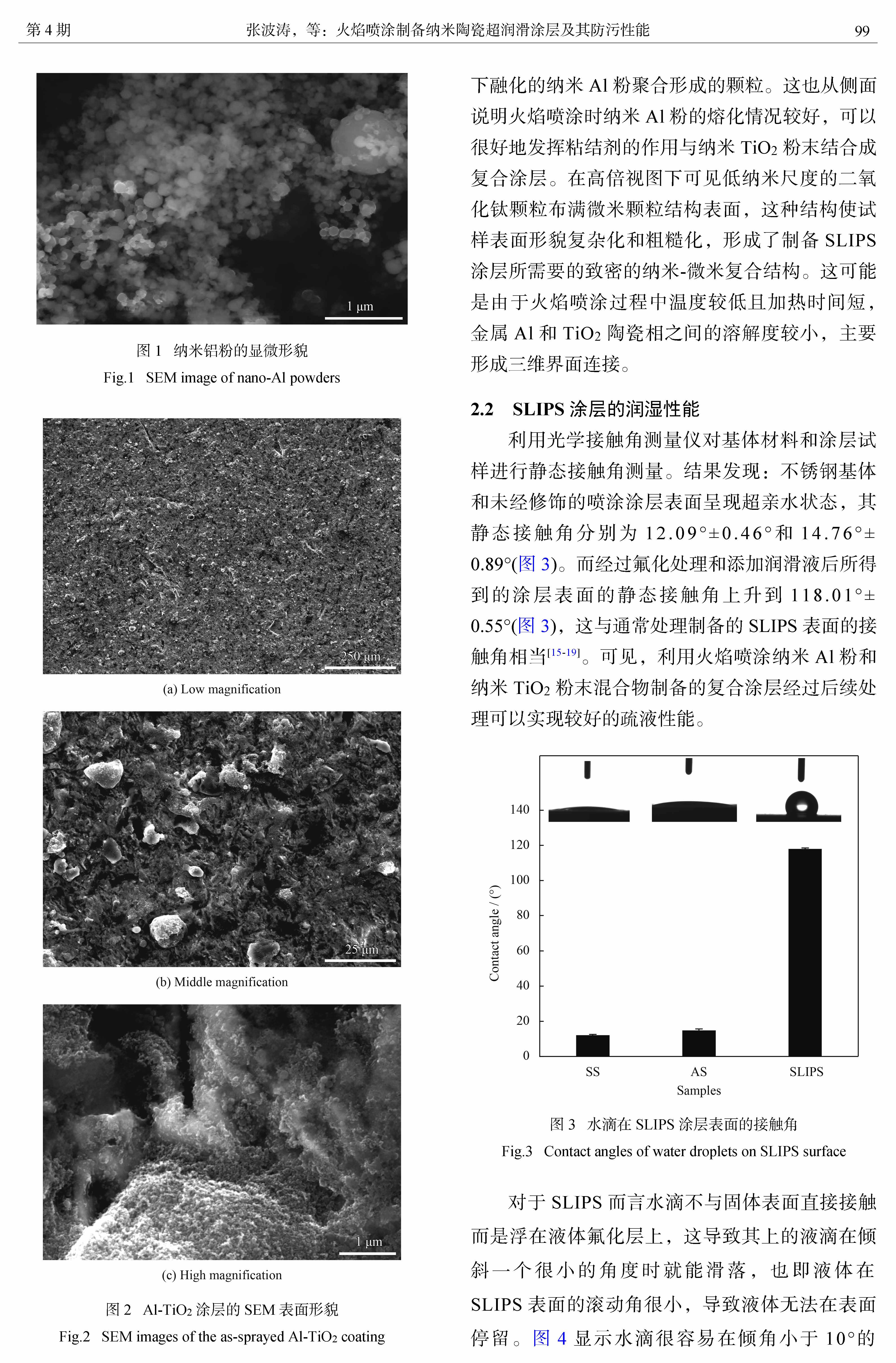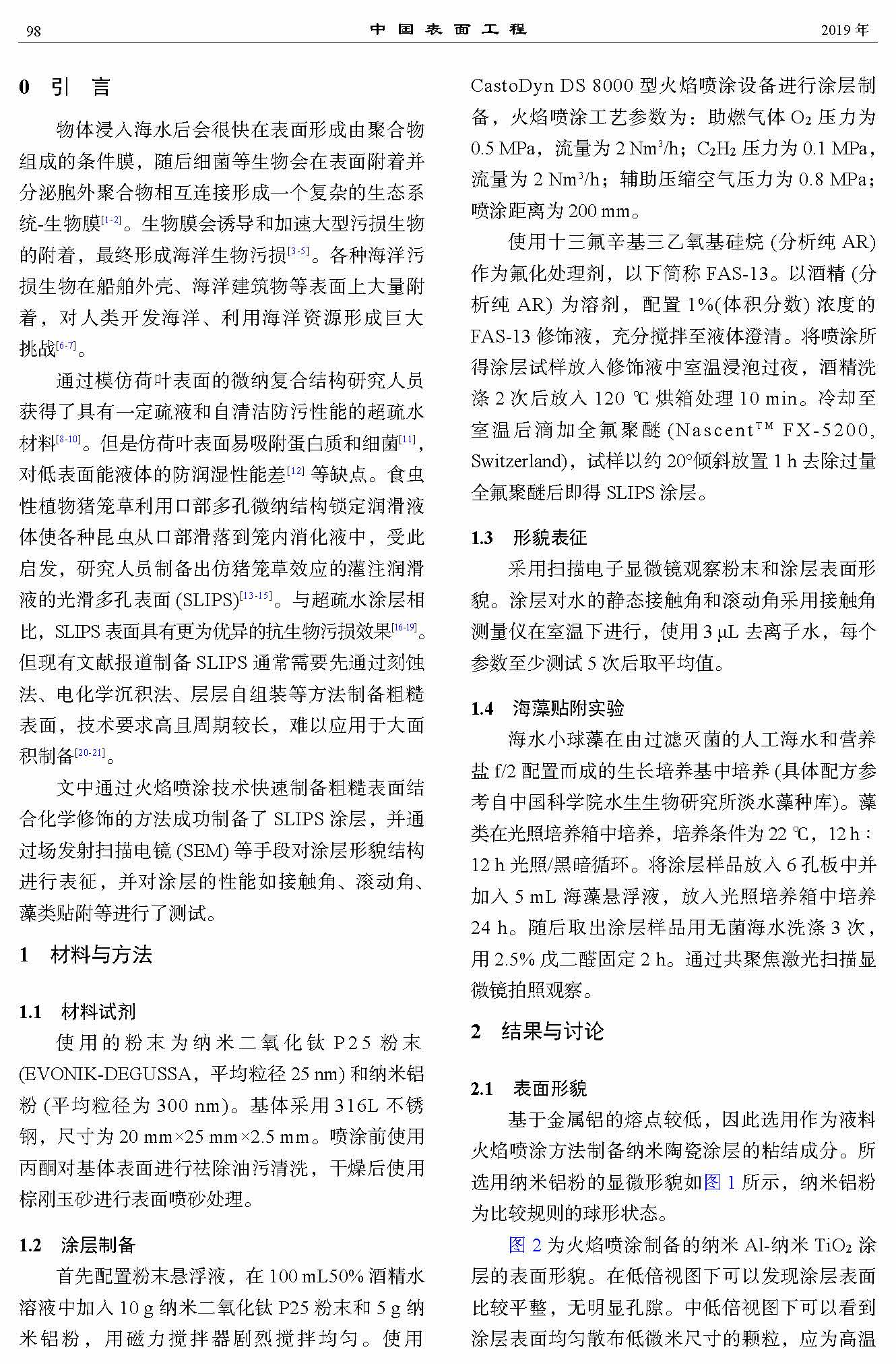标签: 火焰喷涂, 灌注液体型超润滑涂层(SLIPS), 纳米陶瓷, 微观组织, 防污性能