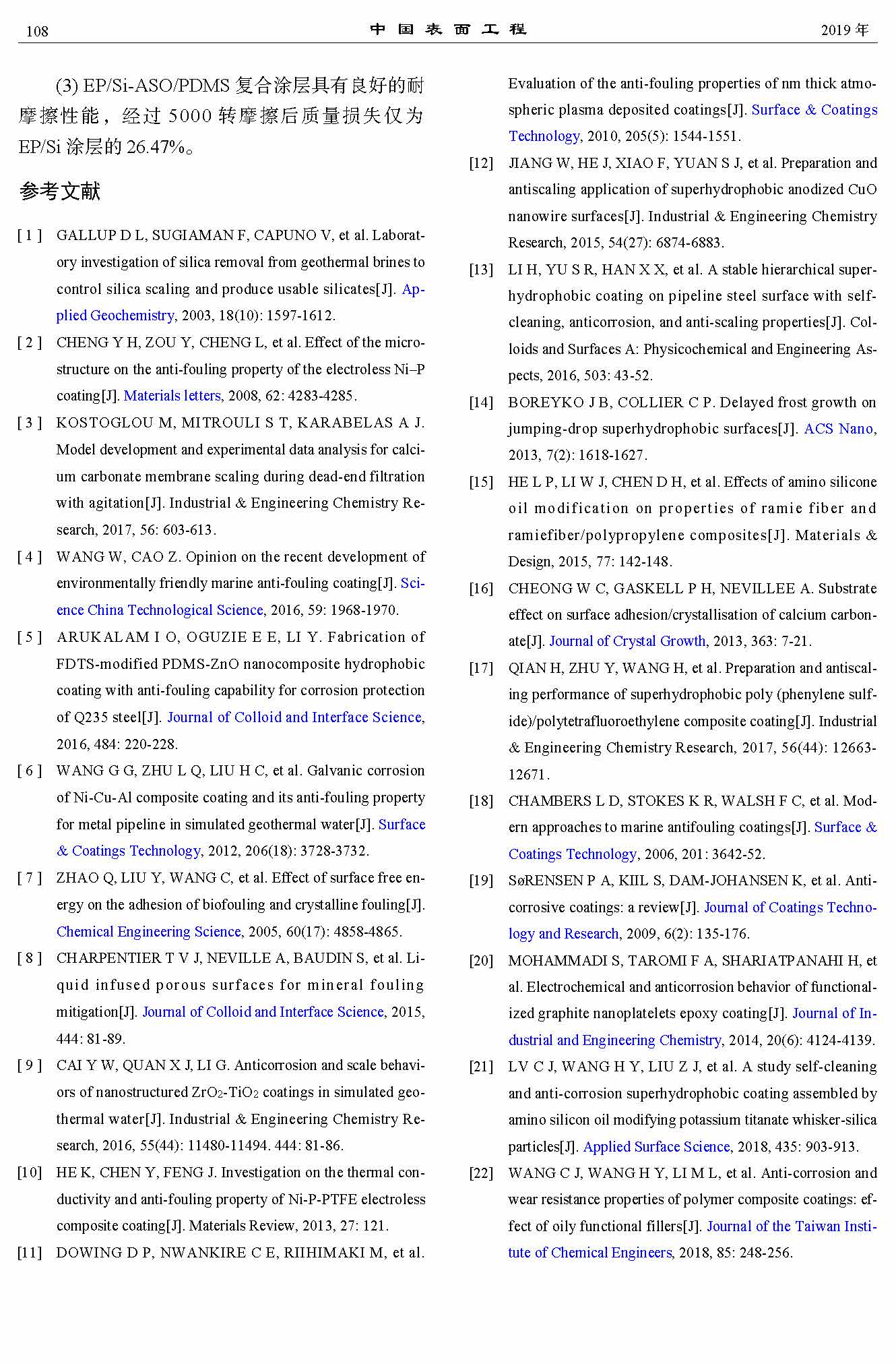 改性硅藻土及PDMS对环氧涂层的阻垢耐蚀性能的影响