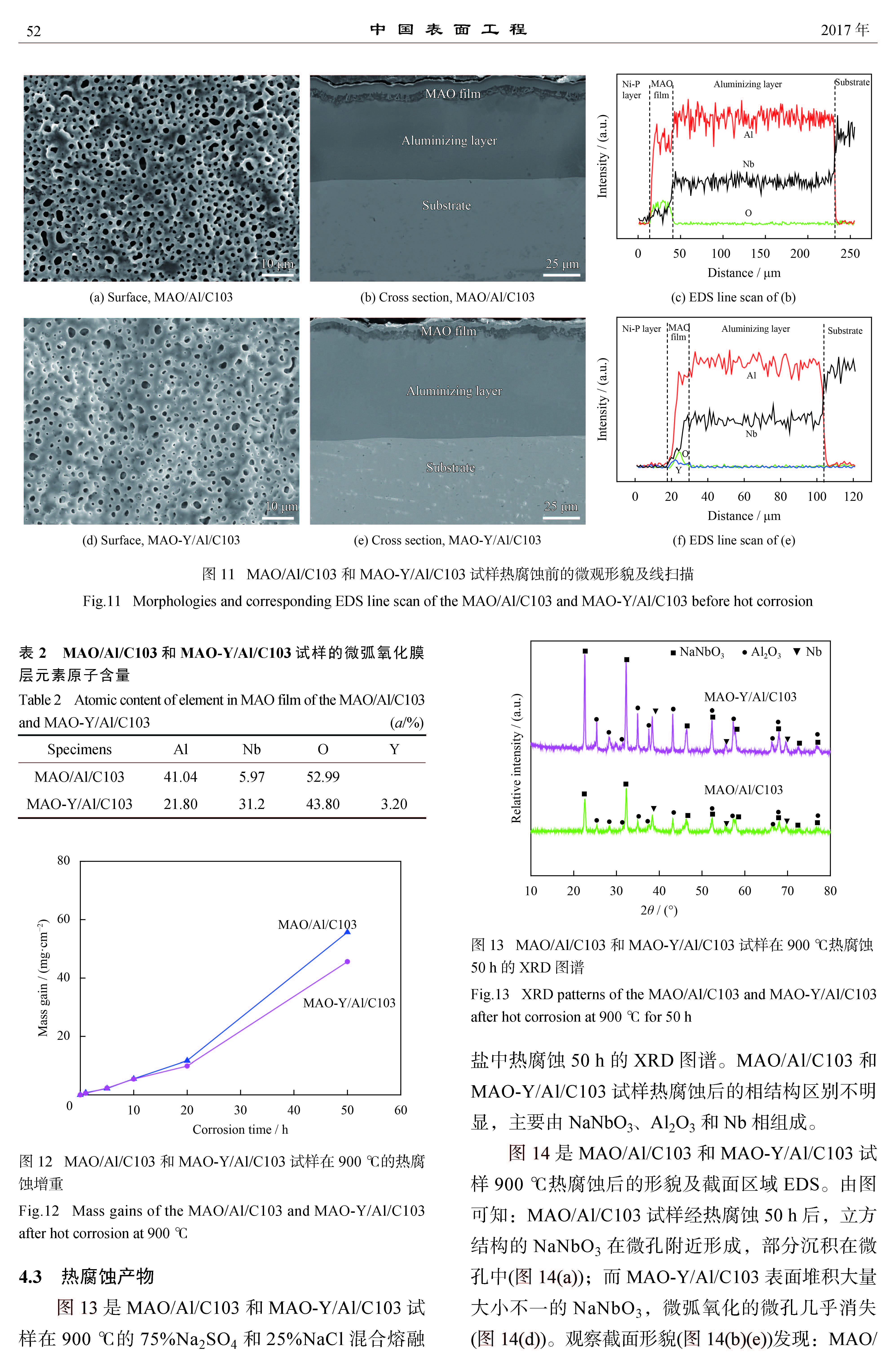 渗铝铌合金的微弧氧化及热腐蚀性能