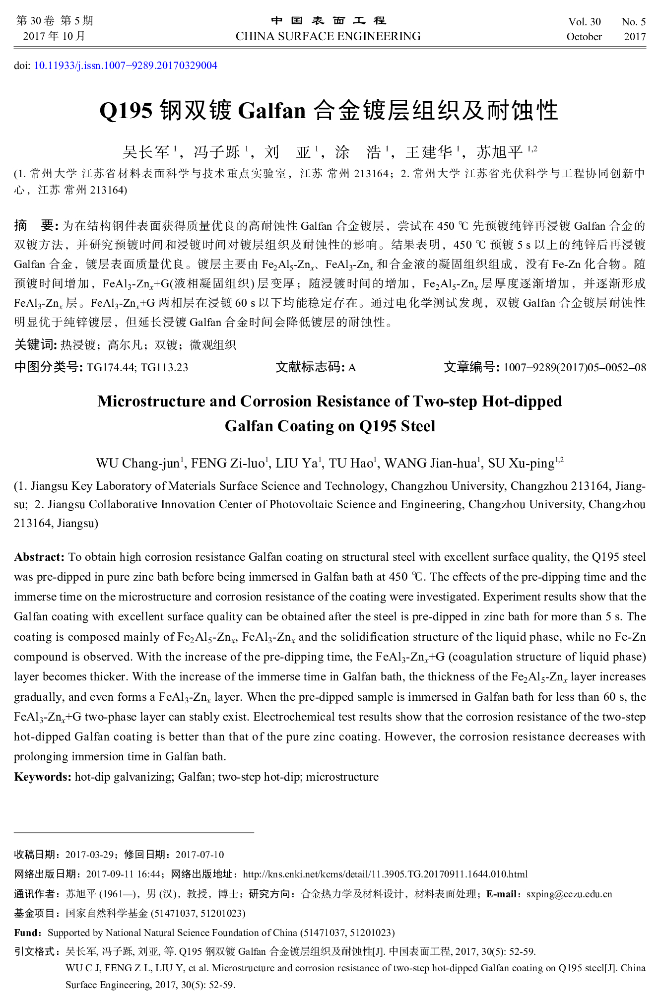 Q195 钢双镀Galfan 合金镀层组织及耐蚀性