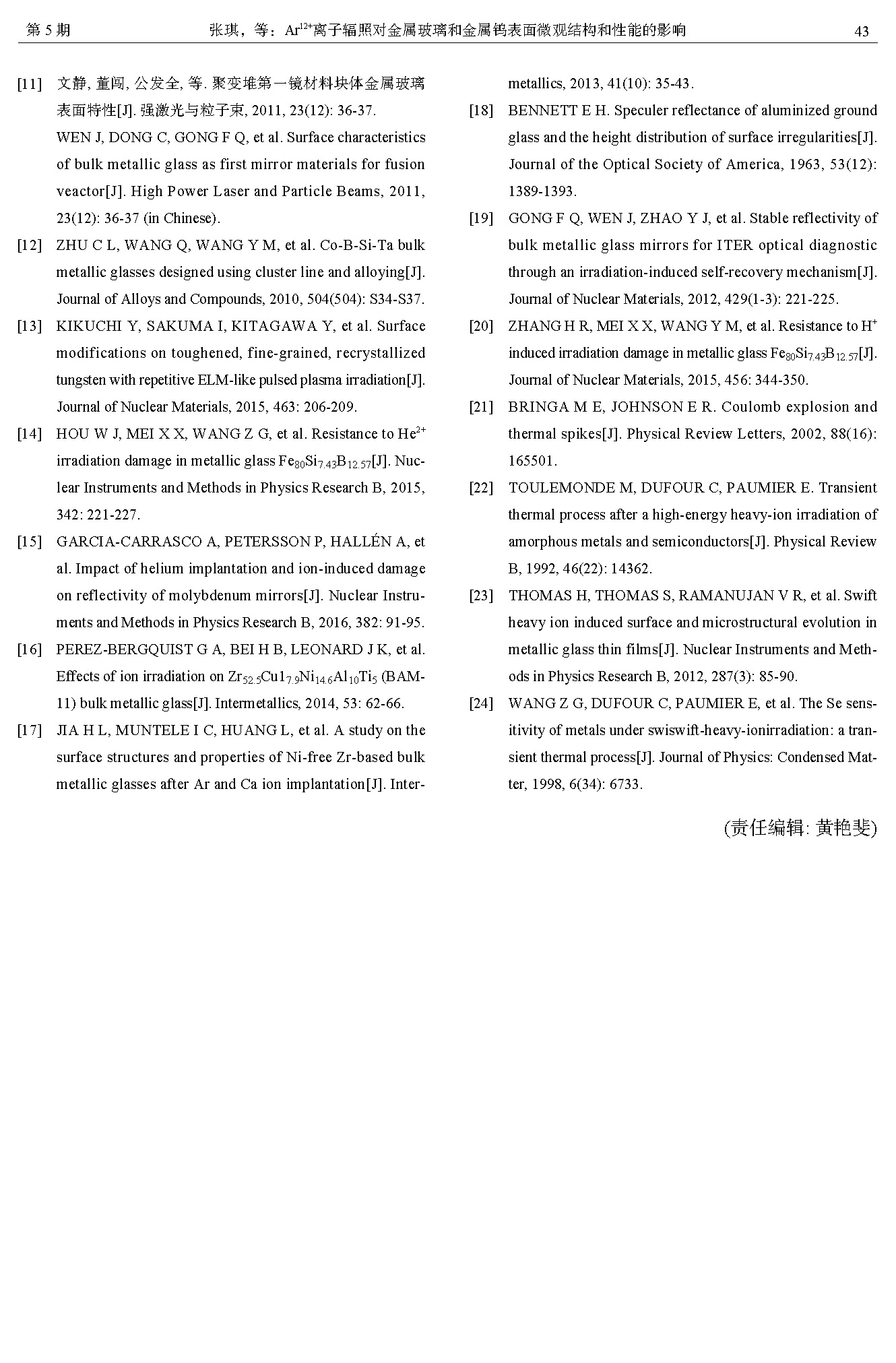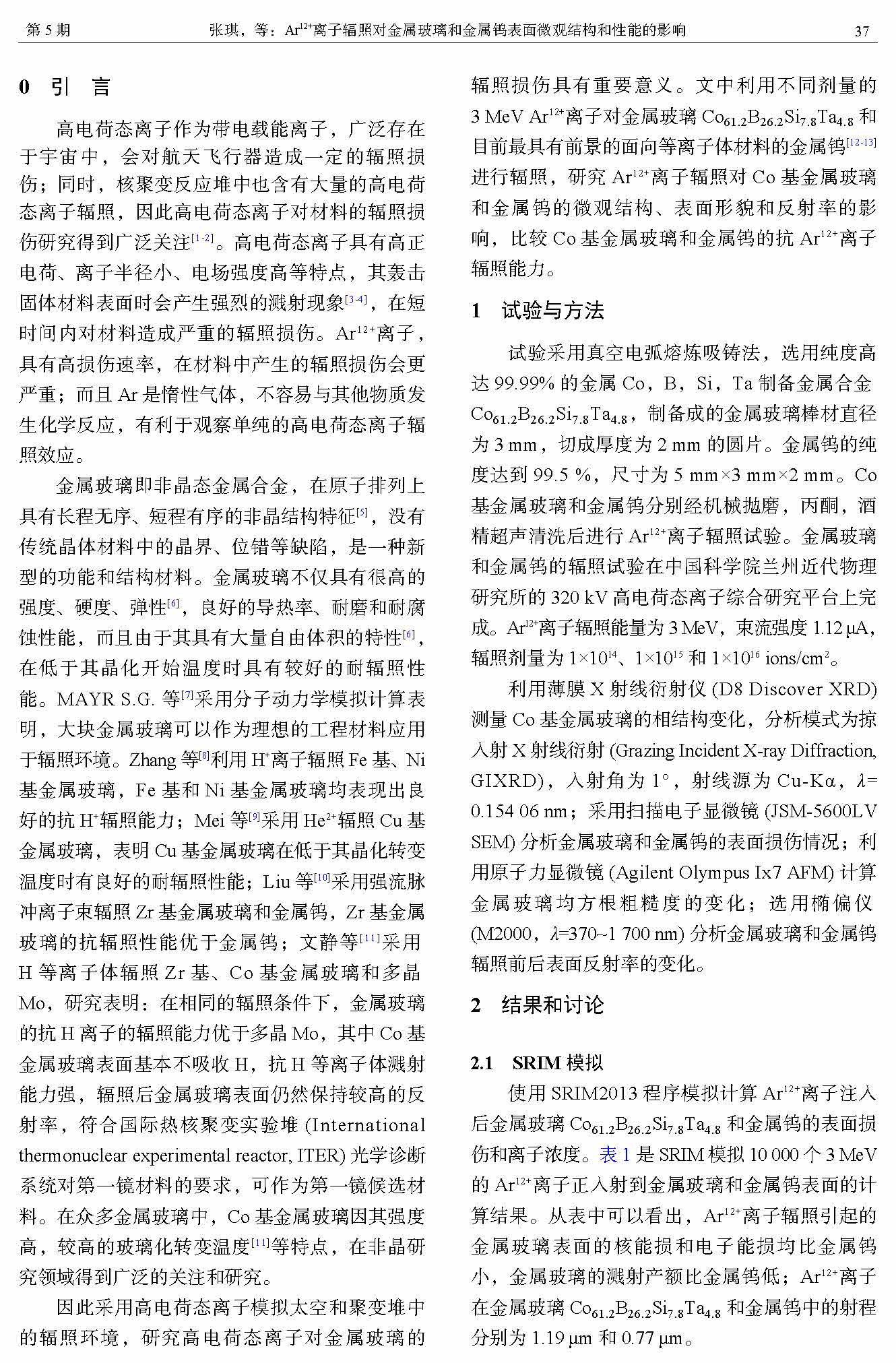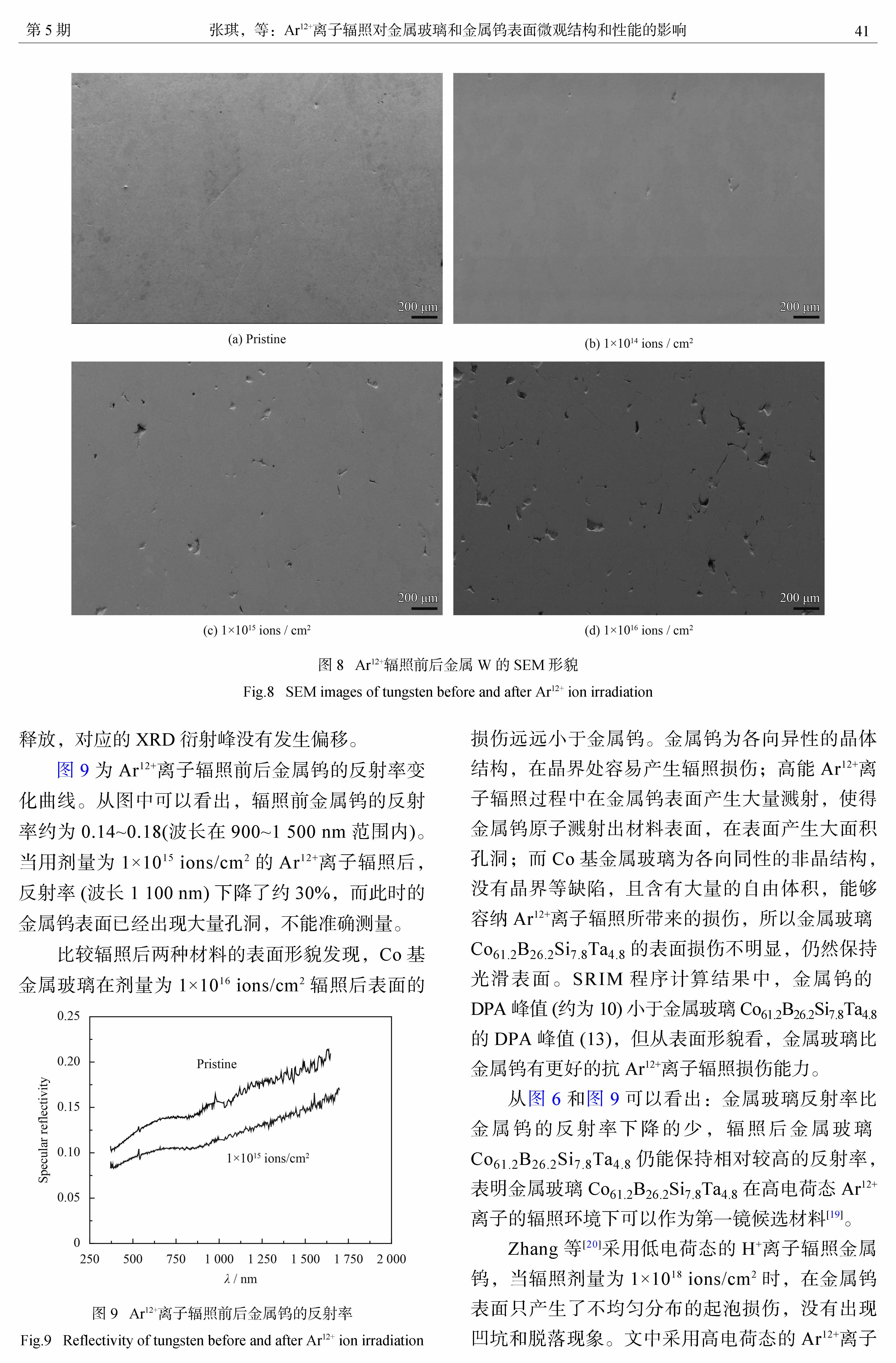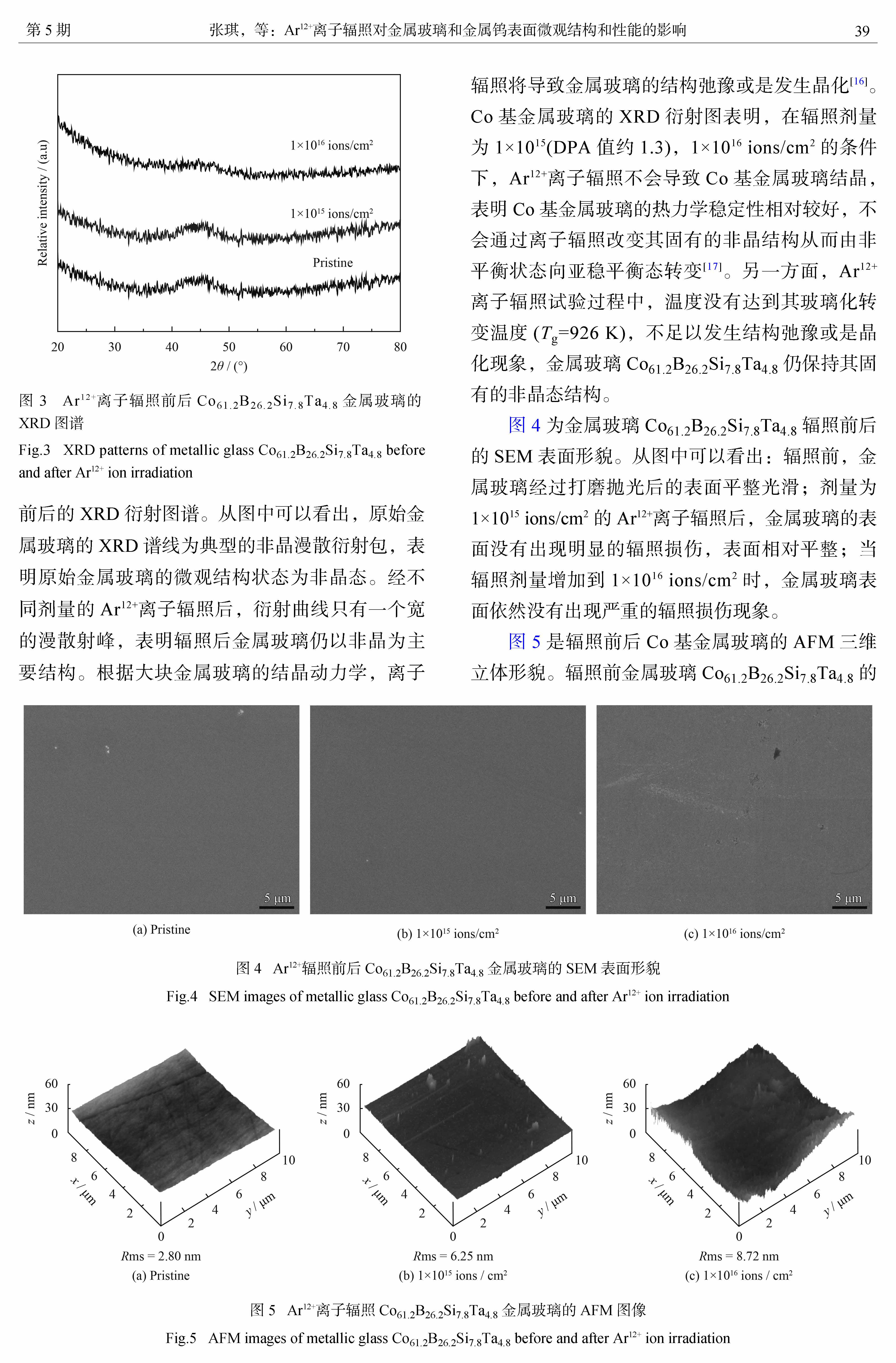Ar12+离子辐照对金属玻璃和金属钨表面微观结构和性能的影响