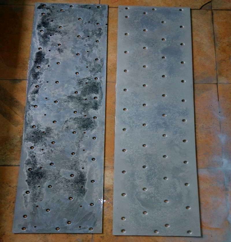 图 1 失效钛阳极形貌 图 2 熔盐法去除涂层现场 图 3 去除涂层后的钛阳极