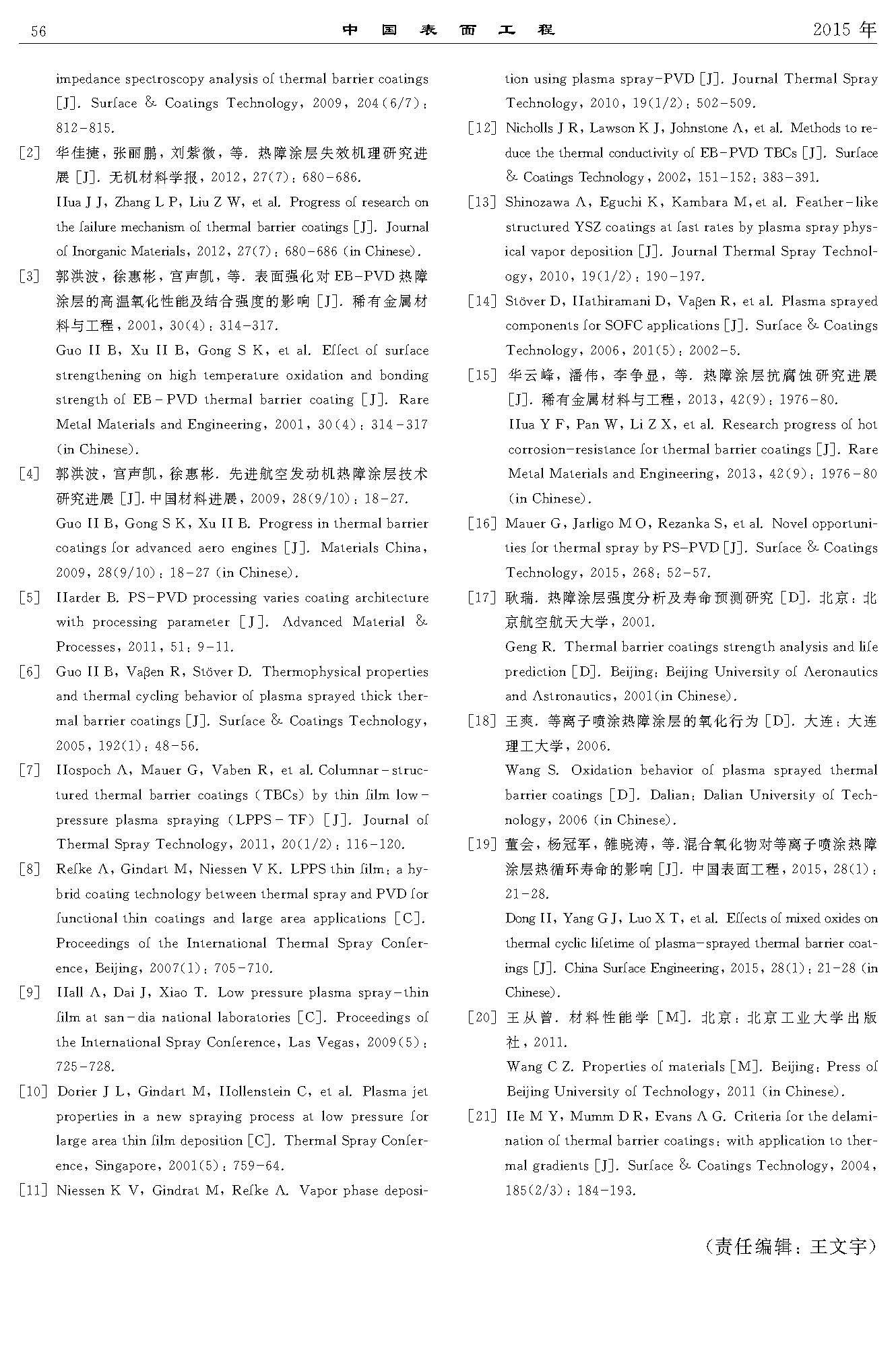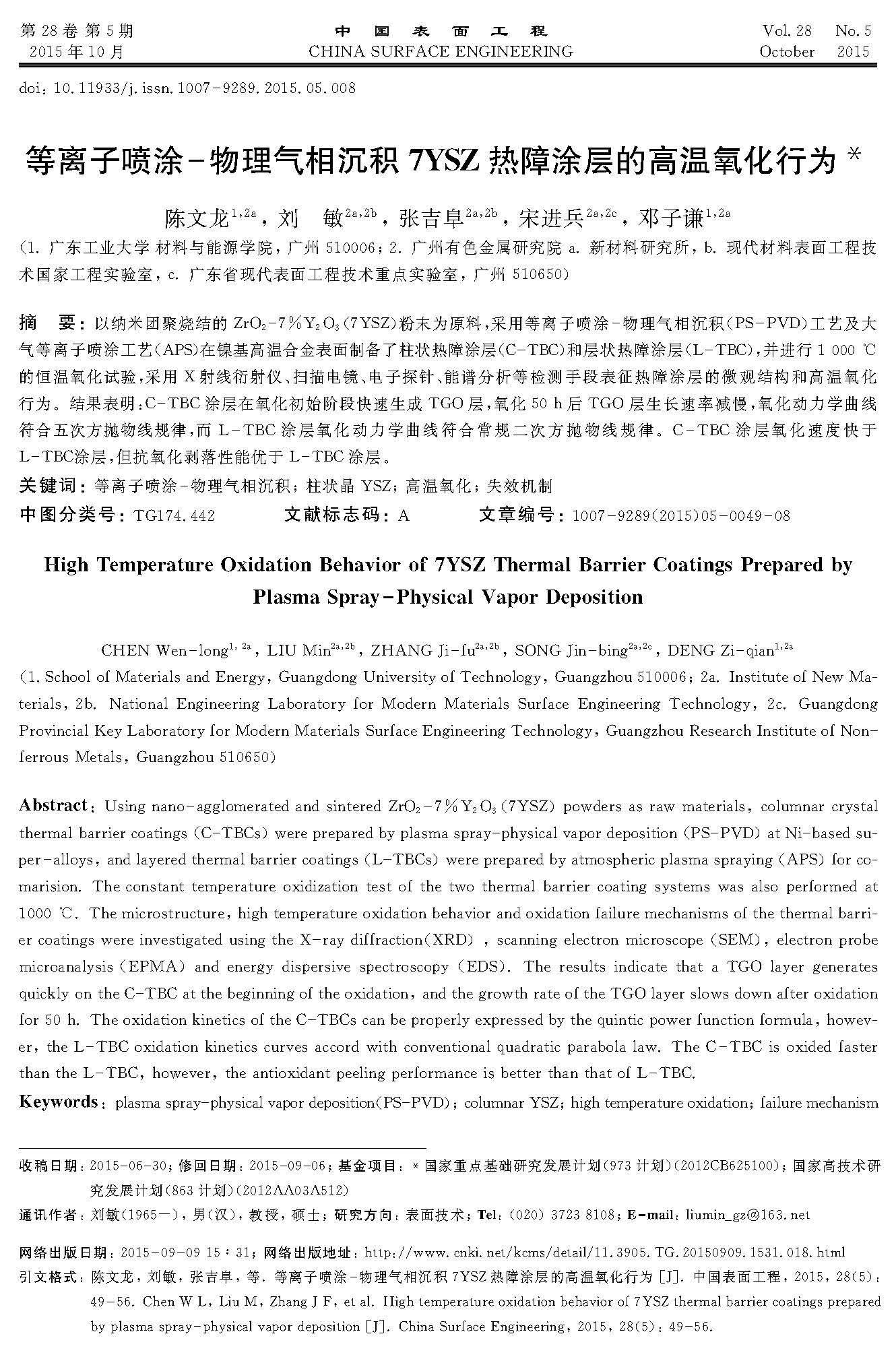 标签: 等离子喷涂物理气相沉积, 柱状晶YSZ, 高温氧化, 失效机制