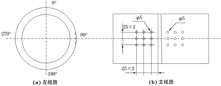 选择与天然气管道形状、材料相近的钢管,加工不同深度的平底孔作为模拟试块,如图1所示,设置的平底孔参数如表1所示。