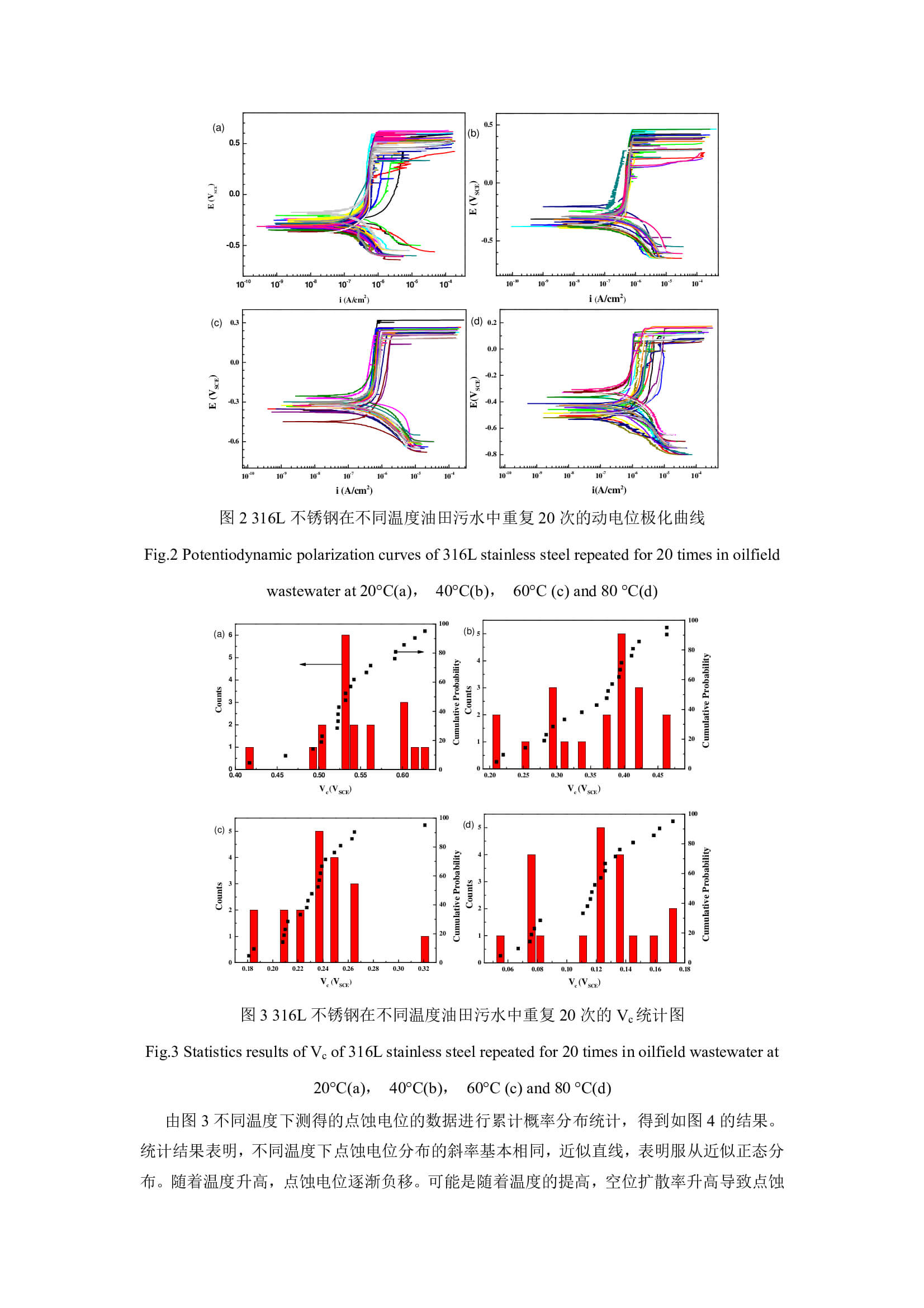 温度对 316L 不锈钢在油田污水中的点蚀行为的影响研究