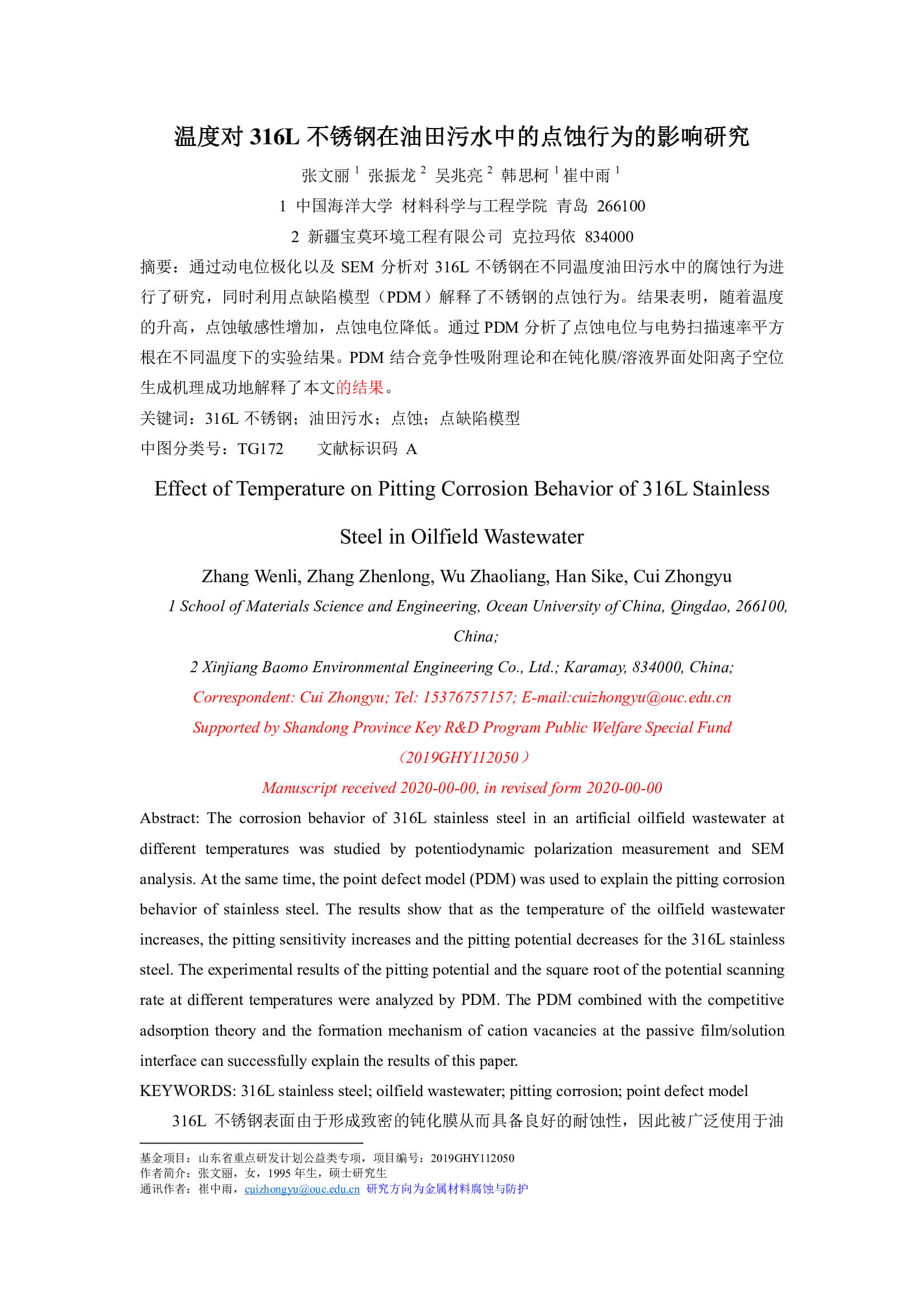 2021-07-14 17:06:41 作者:张文丽,张振龙,吴兆亮,韩思柯,崔中雨 来源:中国腐蚀与防护学报 分享至: