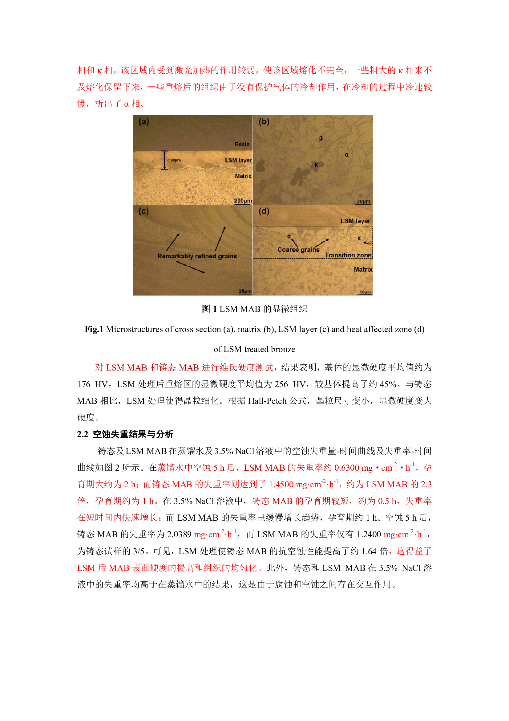 激光重熔对高锰铝青铜在 3.5% NaCl 溶液中空蚀行为的影响研究