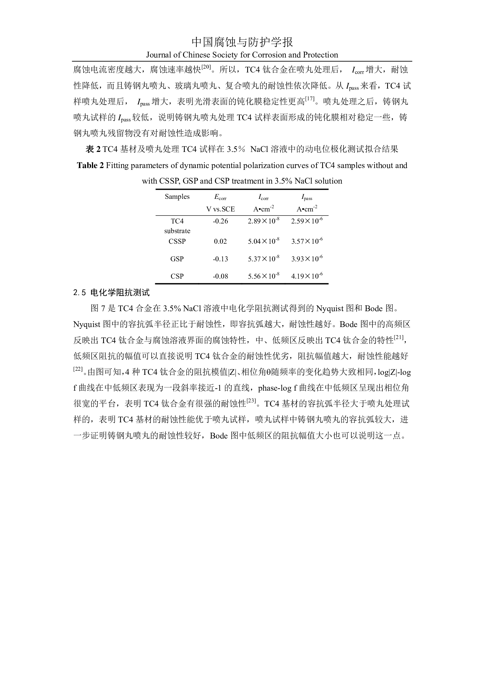 表面状态对 TC4 钛合金的耐蚀性影响