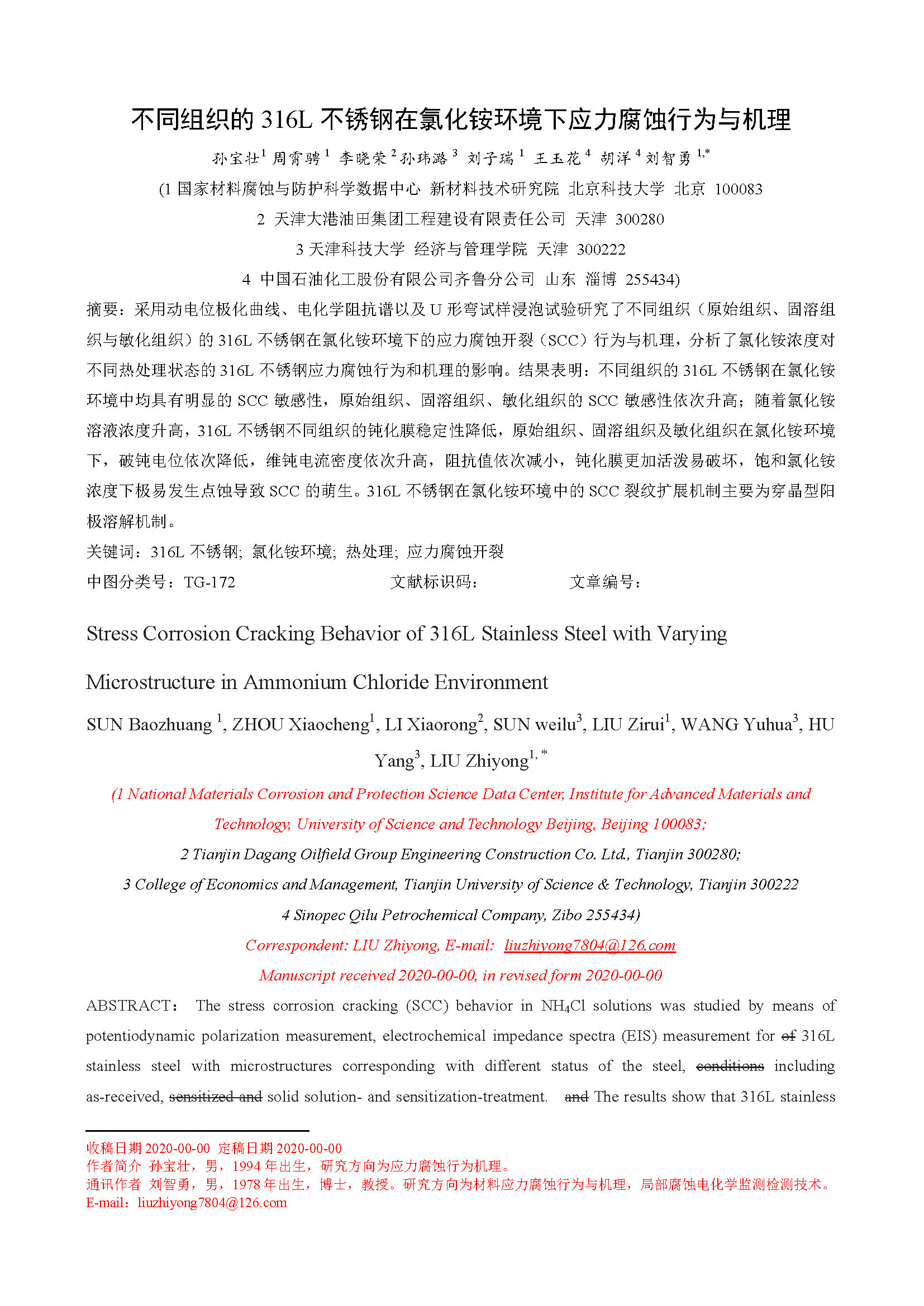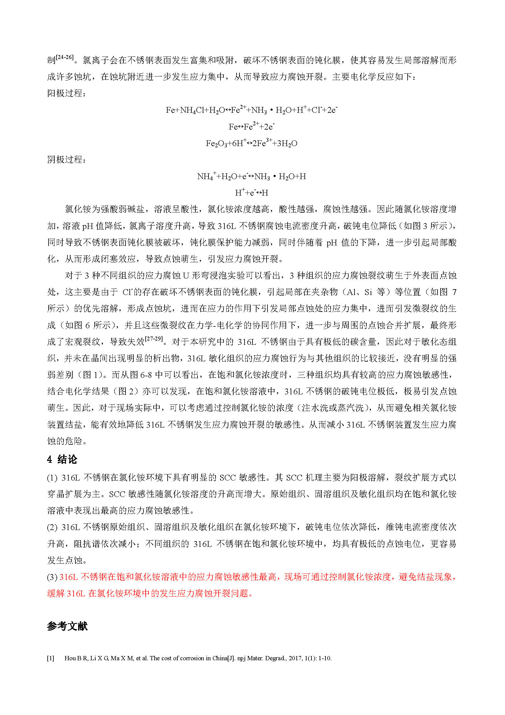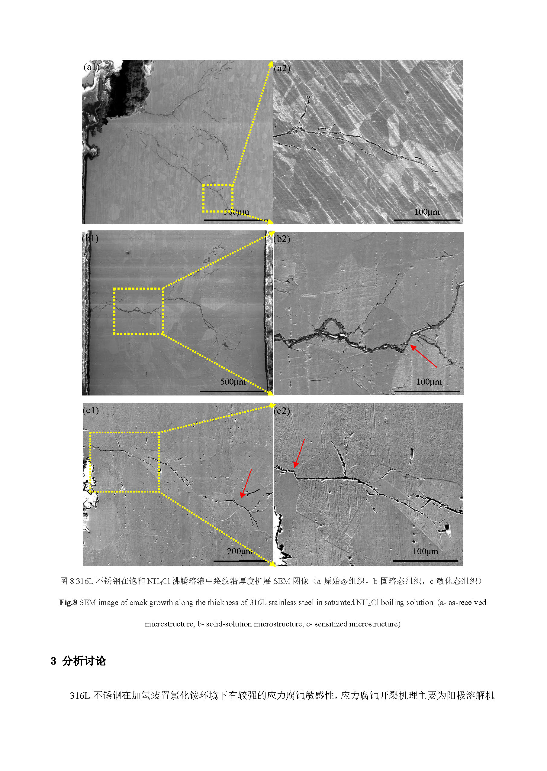 不同组织的316L不锈钢在氯化铵环境下应力腐蚀行为与机理