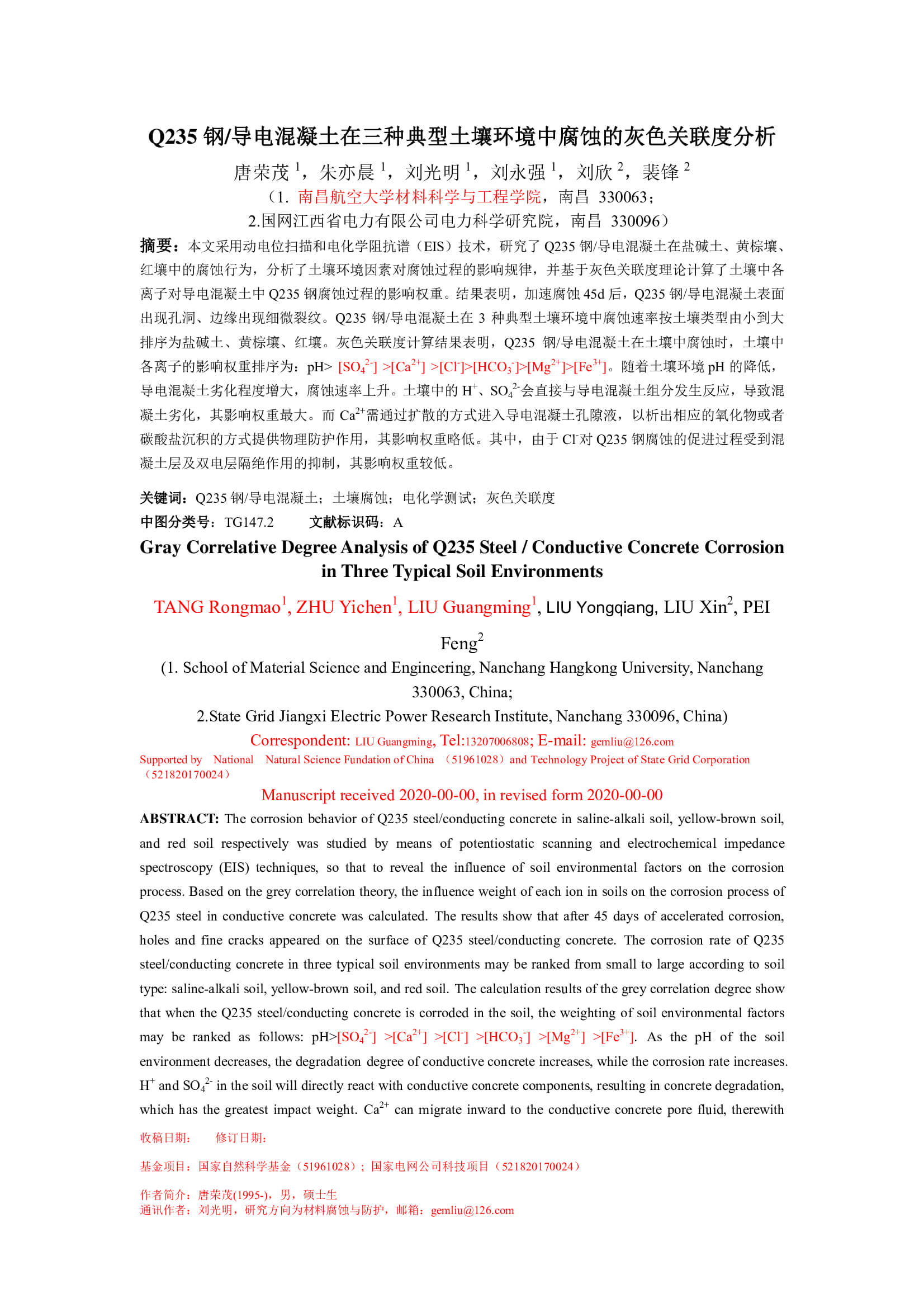 标签: Q235 钢/导电混凝土, 土壤腐蚀, 电化学测试, 灰色关联度