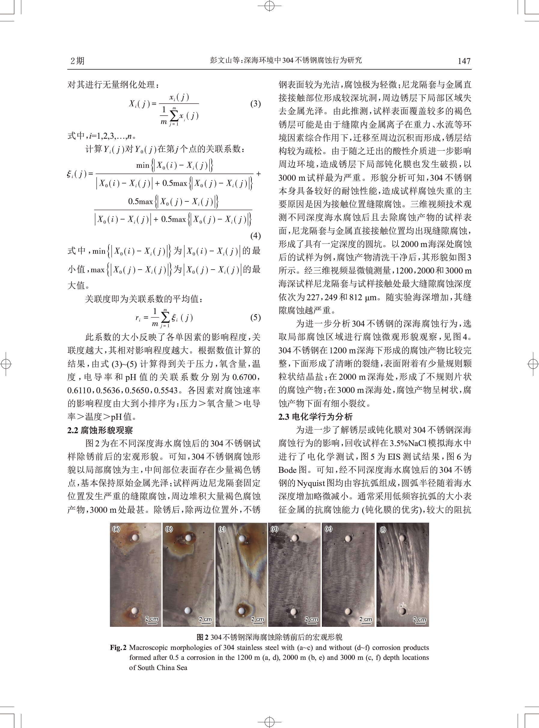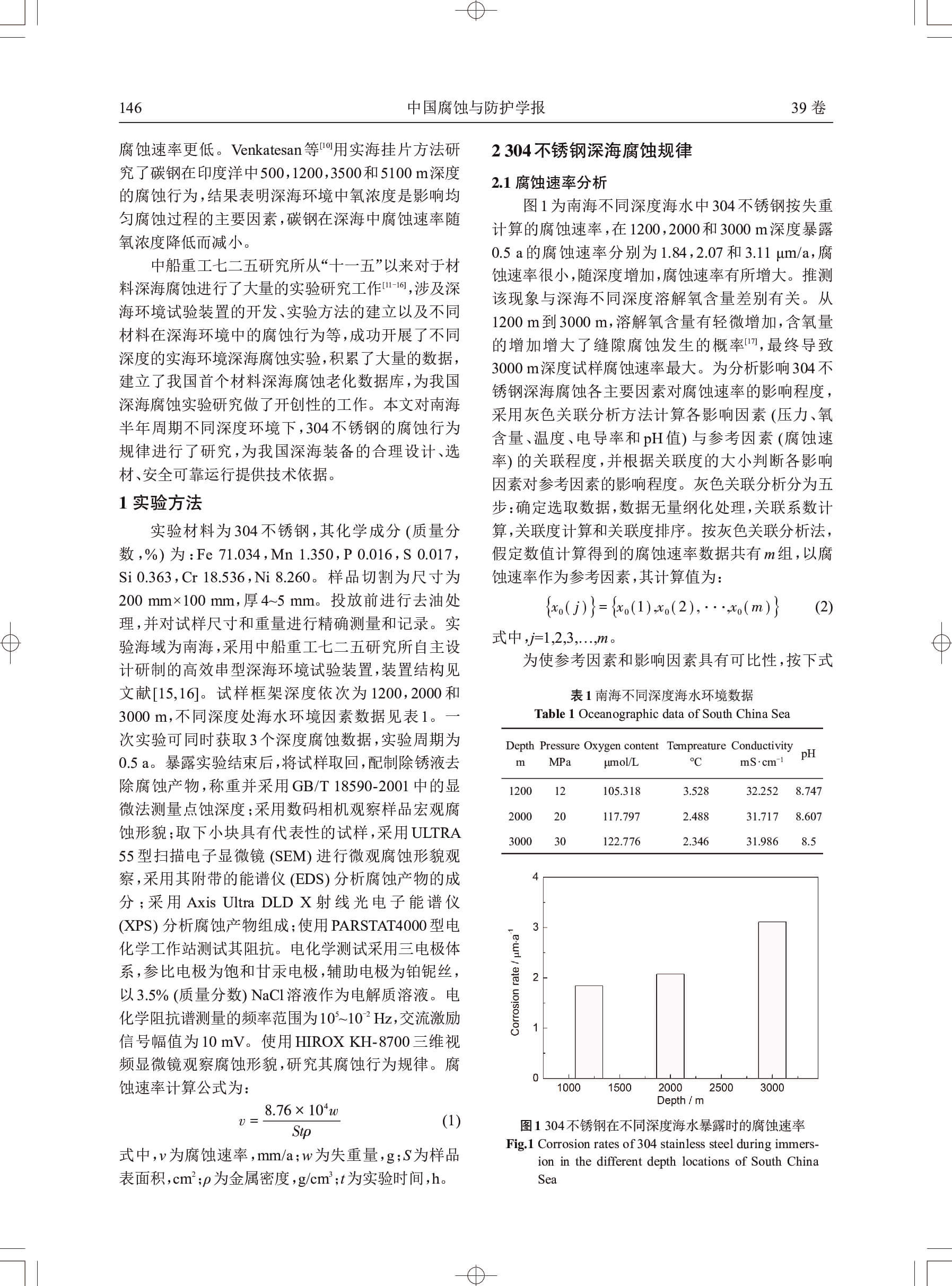 深海环境中304不锈钢腐蚀行为研究