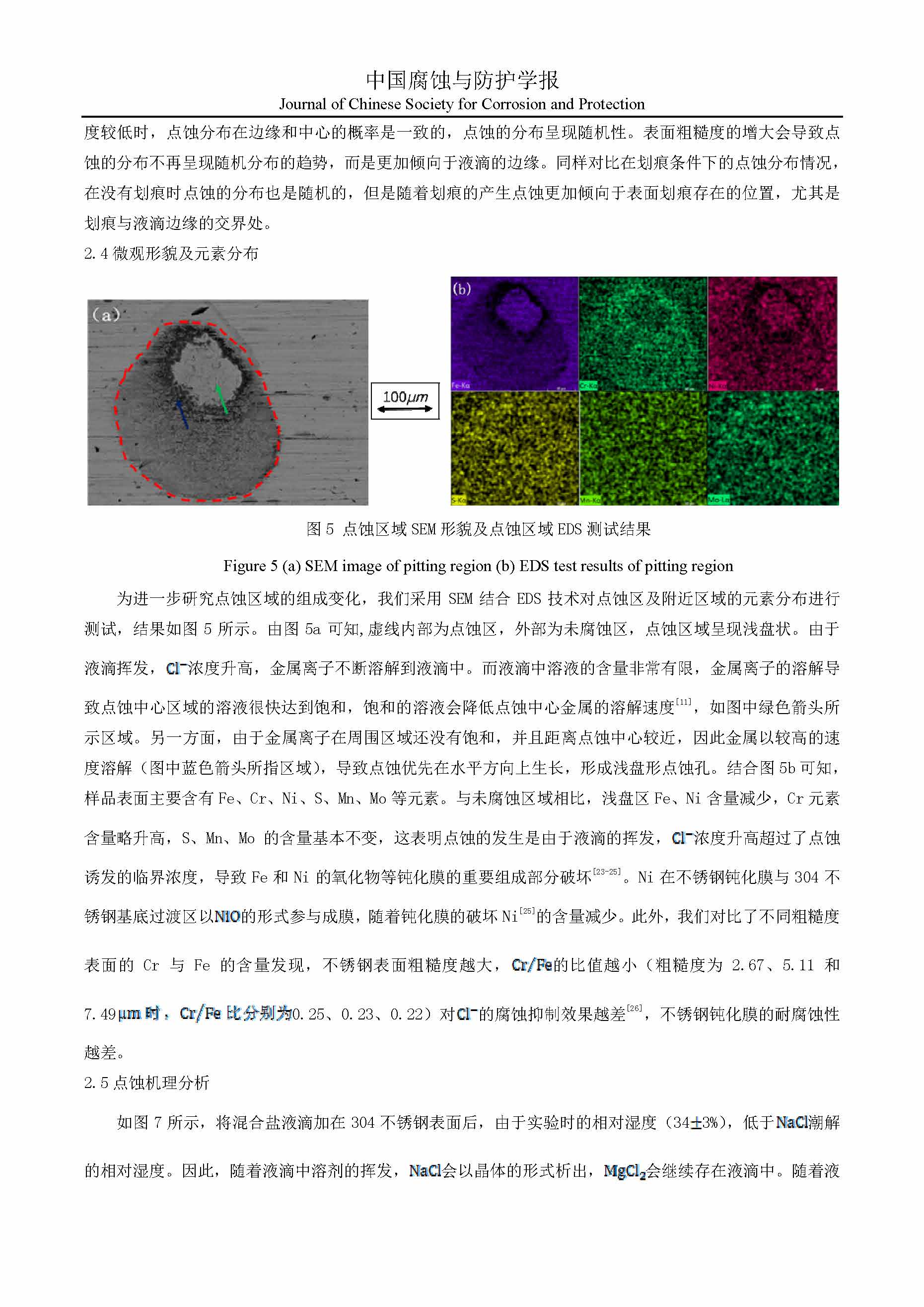 表面划痕对304不锈钢液滴腐蚀行为的影响