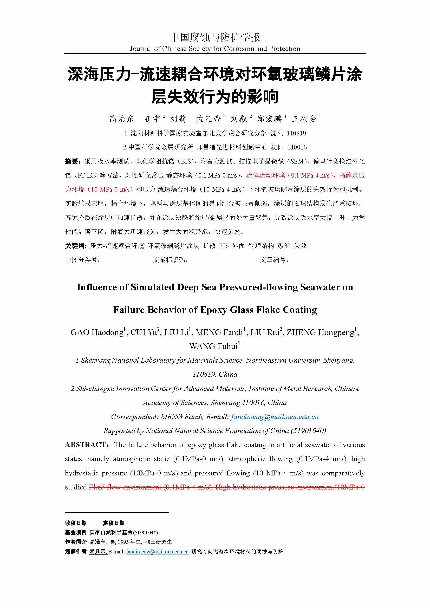深海压力-流速耦合环境对环氧玻璃鳞片涂层失效行为的影响