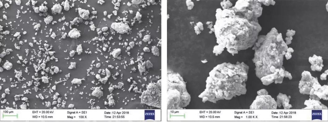 采用扫描电子显微镜(SEM)观测腐蚀产物样品的微观形貌。扫描电子显微镜观测的腐蚀产物样品微观形貌图如图3所示。从图中可以看到,该颗粒也呈无定型,无明显的晶体形状,无典型晶面。颗粒之间聚集较少,较为分散。