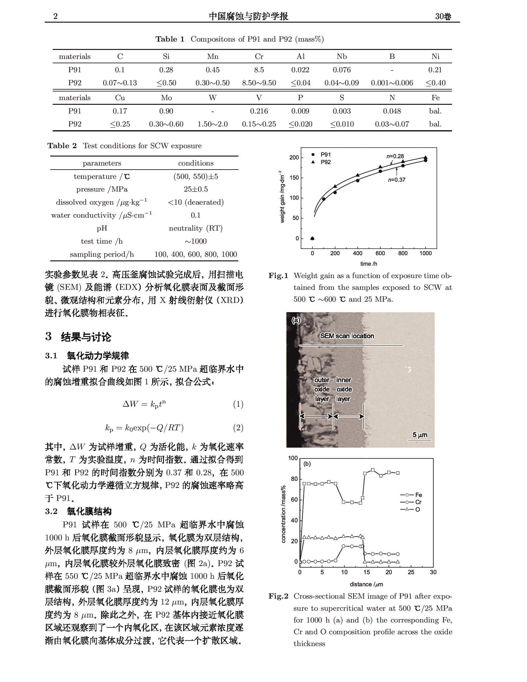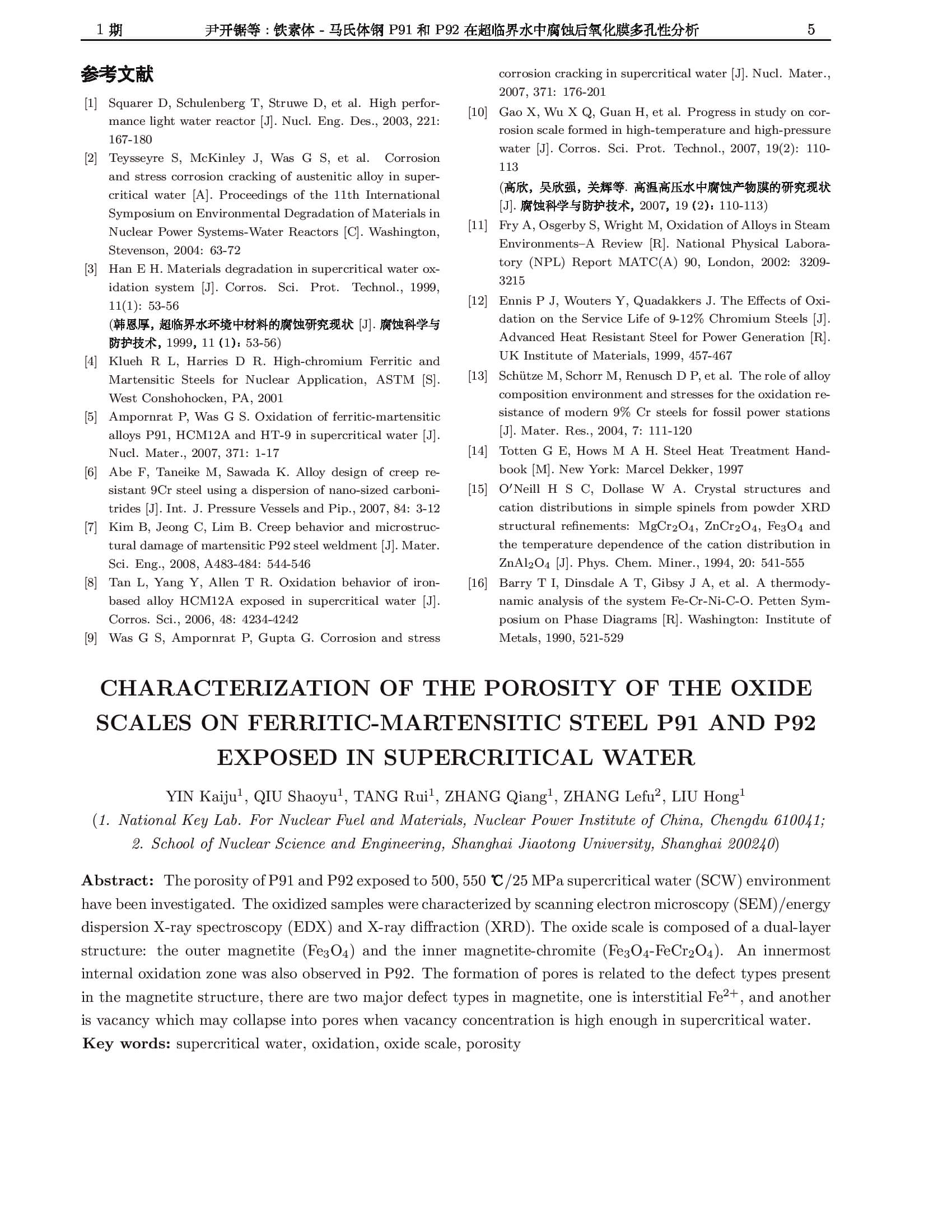 铁素体-马氏体钢P91和P92在超临界水中腐蚀后氧化膜多孔性分析