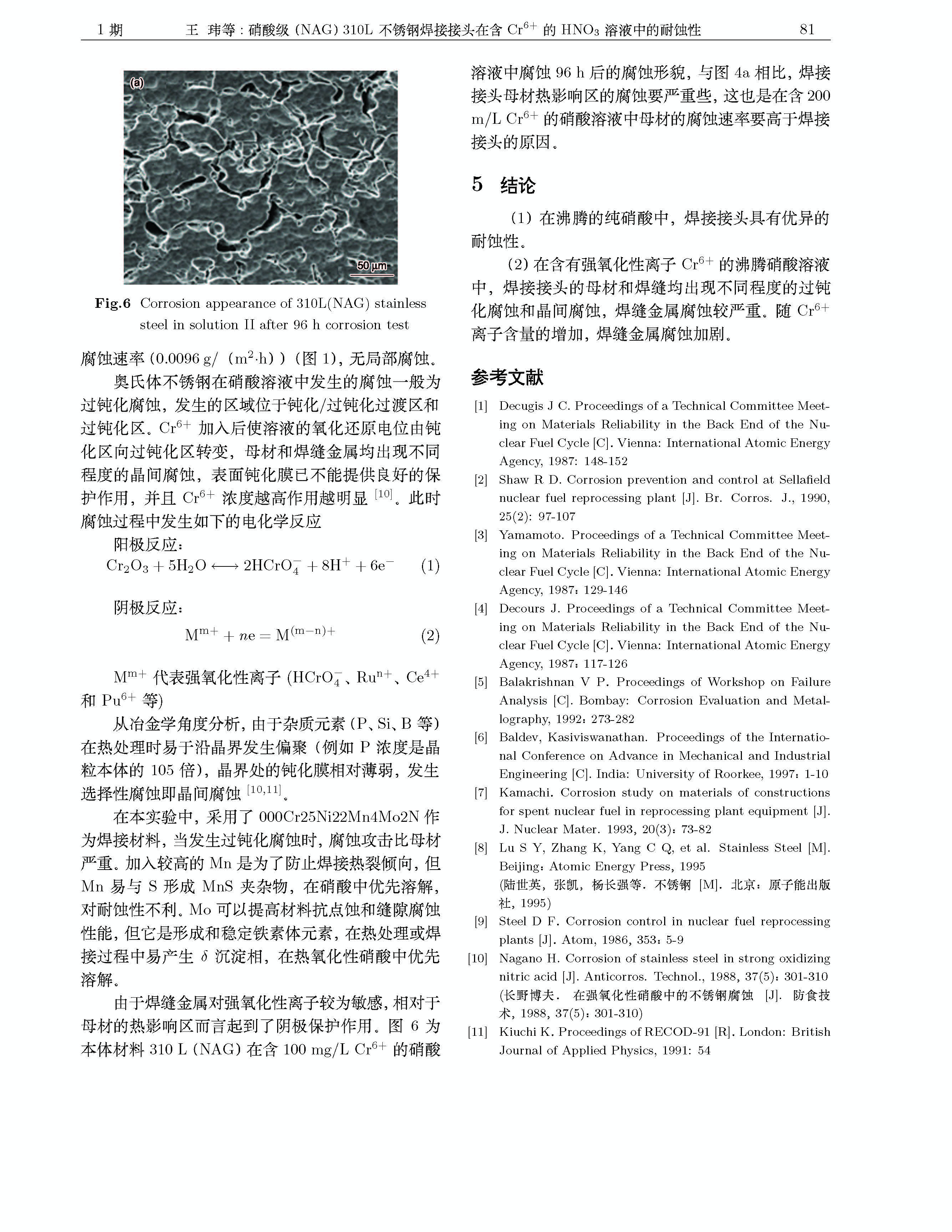 标签: HNO3, Cr6+, 硝酸级310L不锈钢, 过钝化腐蚀, 晶间腐蚀