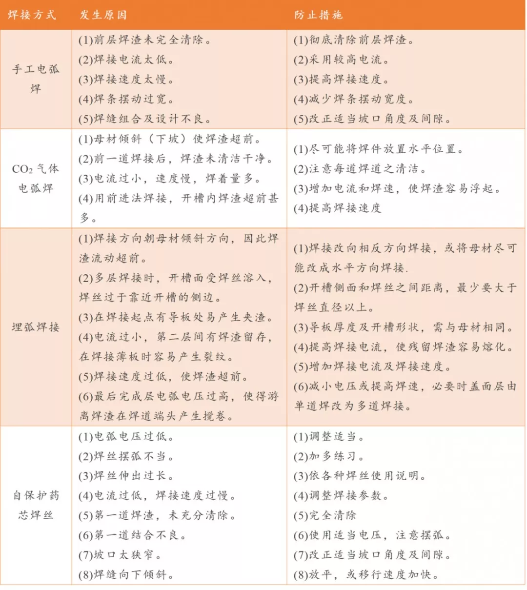 预防措施:(1)采用自动和半自动切割机或刨边机加工坡口。(2)焊缝组对间隙应控制在标准规范要求值以内,背面用碳弧气刨清根后,采用砂轮修整刨槽及碳化层,使刨槽宽窄一致。(3)选用适当的焊接电流和焊条直径,遵守焊接工艺,熟练掌握操作技术,保持焊速均匀;手工焊操作人员要熟练地掌握运条速度和焊条角度,以获得成形美观的焊缝。