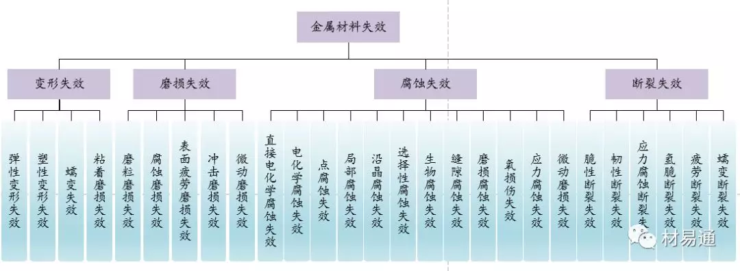 金属材料的失效形式及失效原因密切相关,失效形式是材料失效过程的表观特征,可以通过适当的方式进行观察。而失效原因是导致构件失效的物理化学机制,需要通过失效过程调研研究及对失效件的宏观、微观分析来诊断和论证。