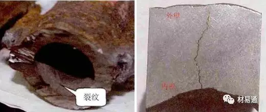 金属材料本身的缺陷, 特别是表面缺陷,如夹杂、斑疤、划痕、折叠、氧化、脱碳、粗晶以及气泡、疏松、偏析、白点、过热、过烧、发纹等,不仅其本身直接破坏了材料的连续性,降低了材料的强度与塑性,而且往住在这些缺陷的尖锐的前沿,造成很大的应力集中,使得材料在很低的平均应力下产生裂纹并得以扩展,最后导致断裂。
