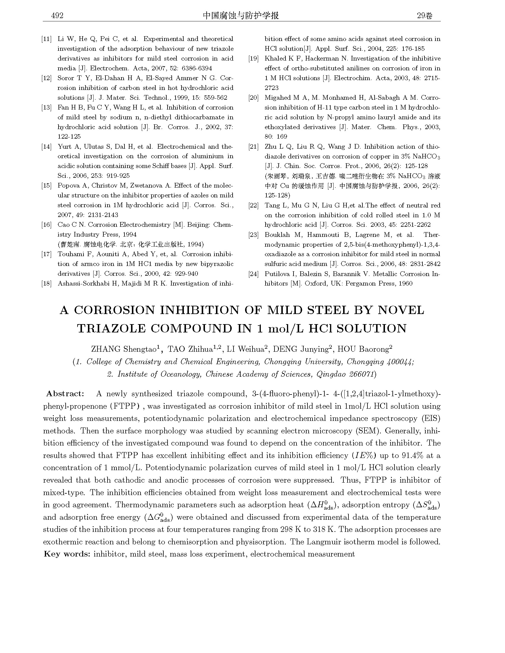 2021-08-06 14:13:02 作者:张胜涛 陶志华 李伟华 邓俊英 侯保荣 来源:中国腐蚀与防护学报 分享至: