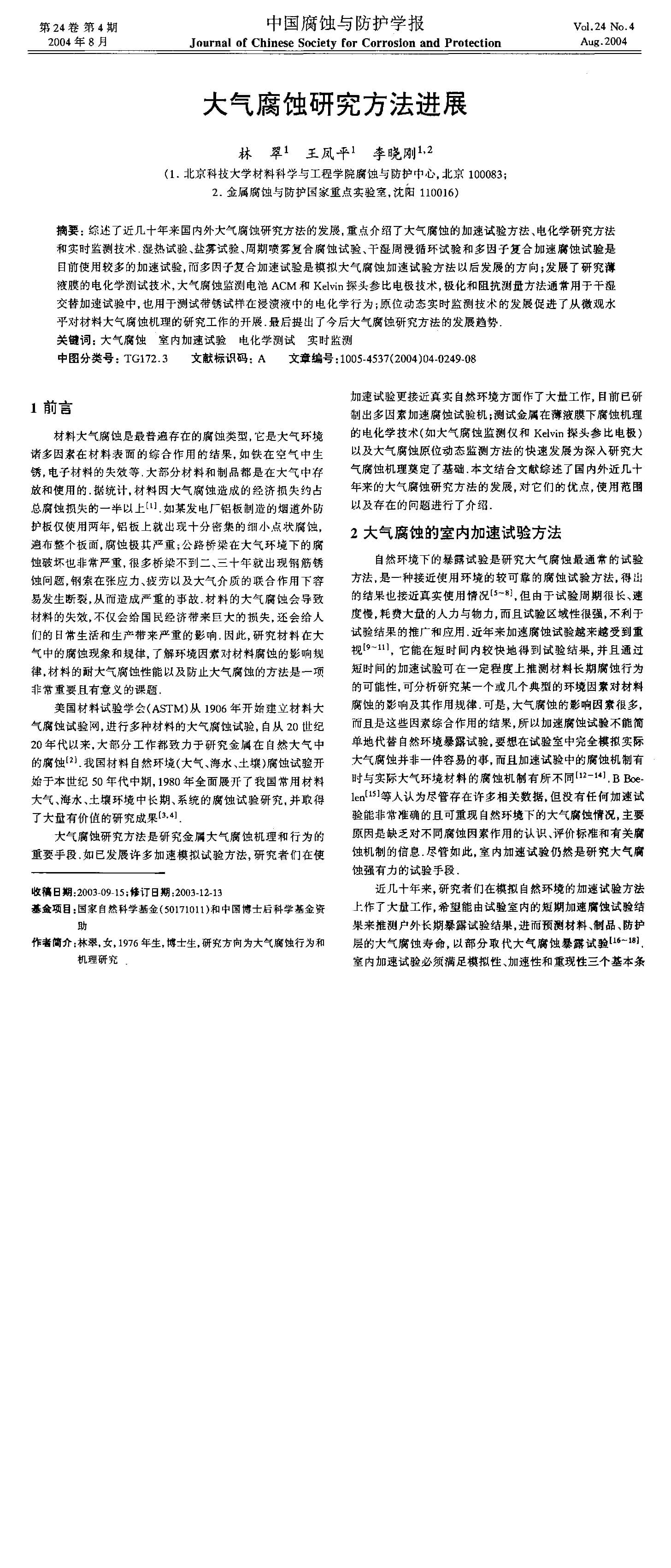 2021-08-06 14:44:28 作者:林翠,王凤平,李晓刚 来源:中国腐蚀与防护学报 分享至: