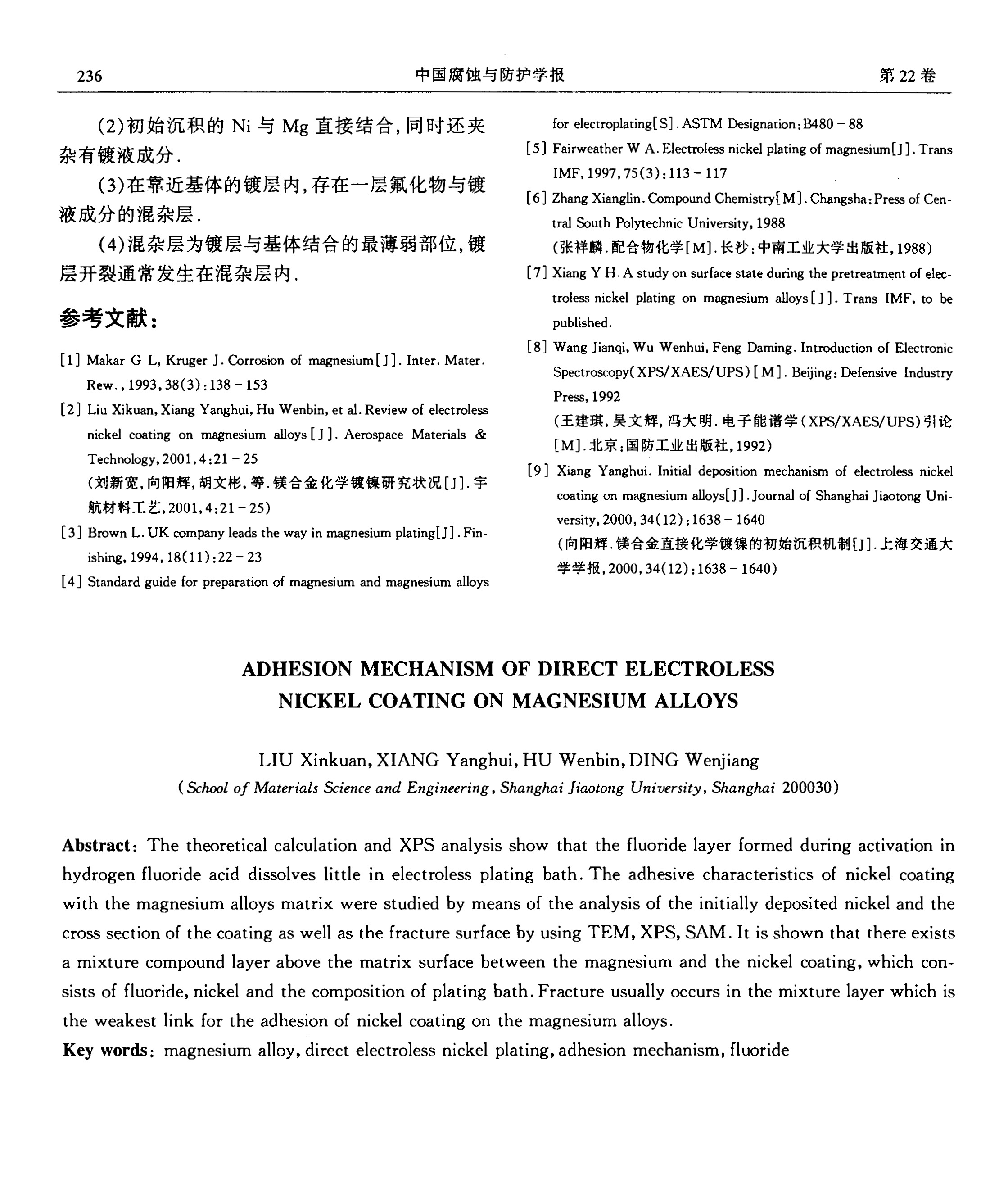 镁合金化学镀镍层的结合机理