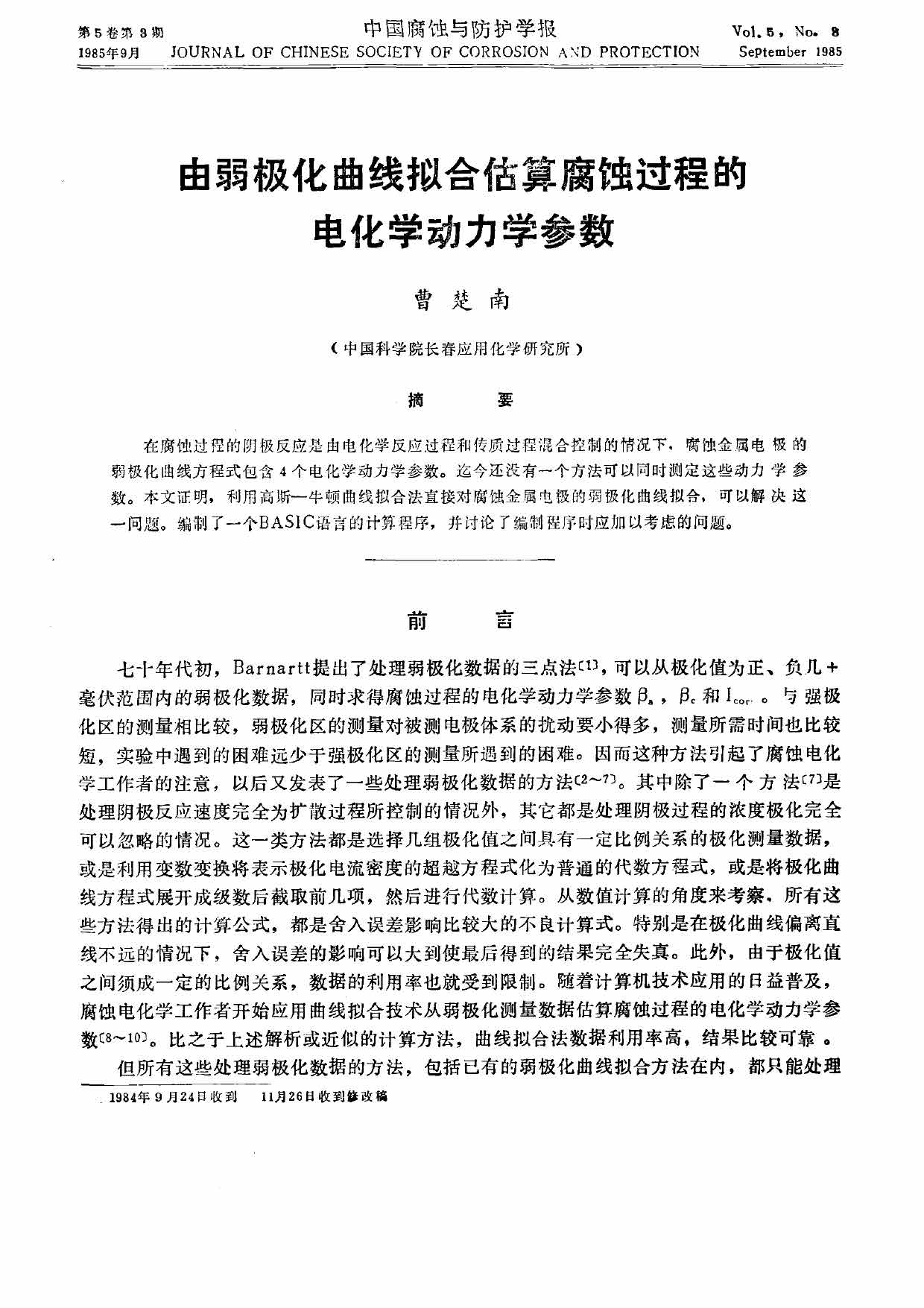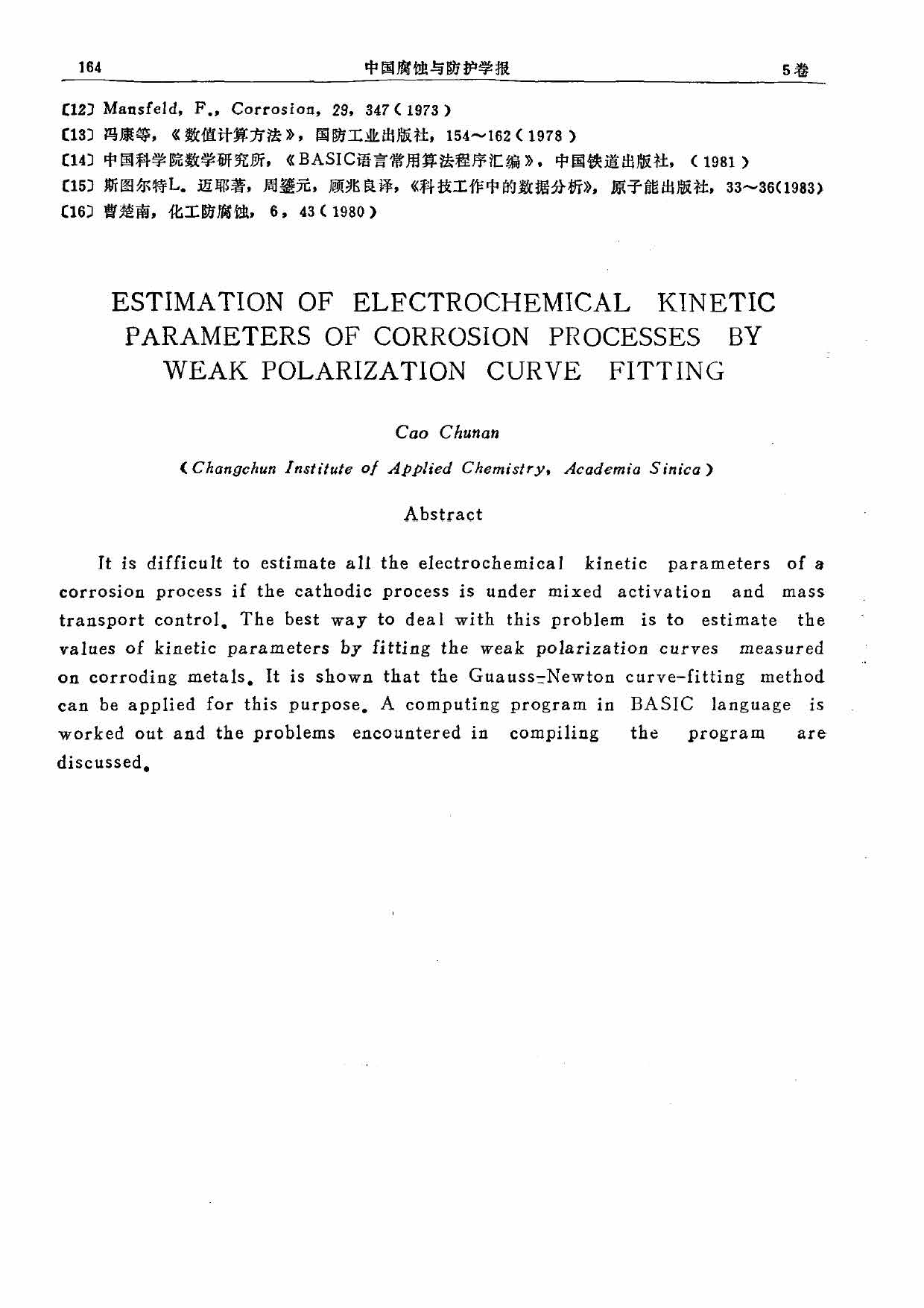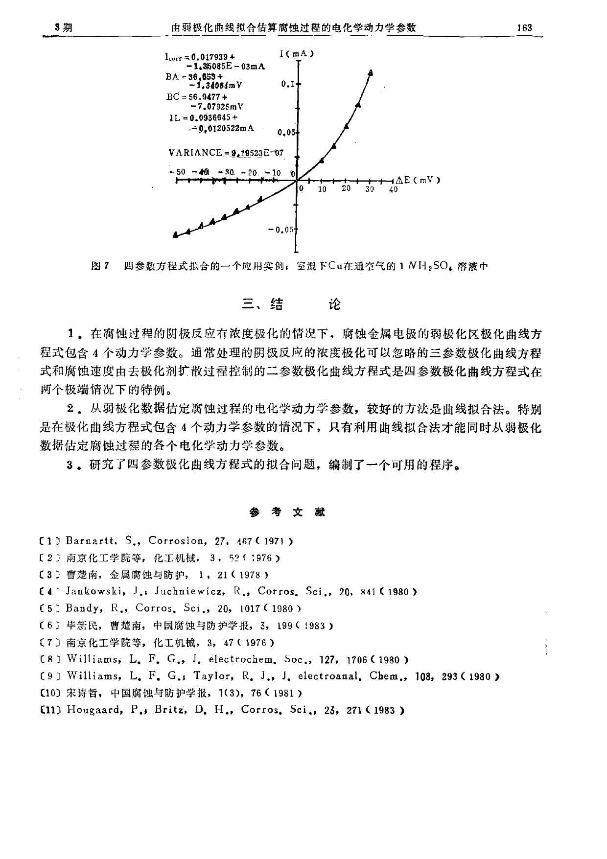 由弱极化曲线拟合估算腐蚀过程的电化学动力学参数