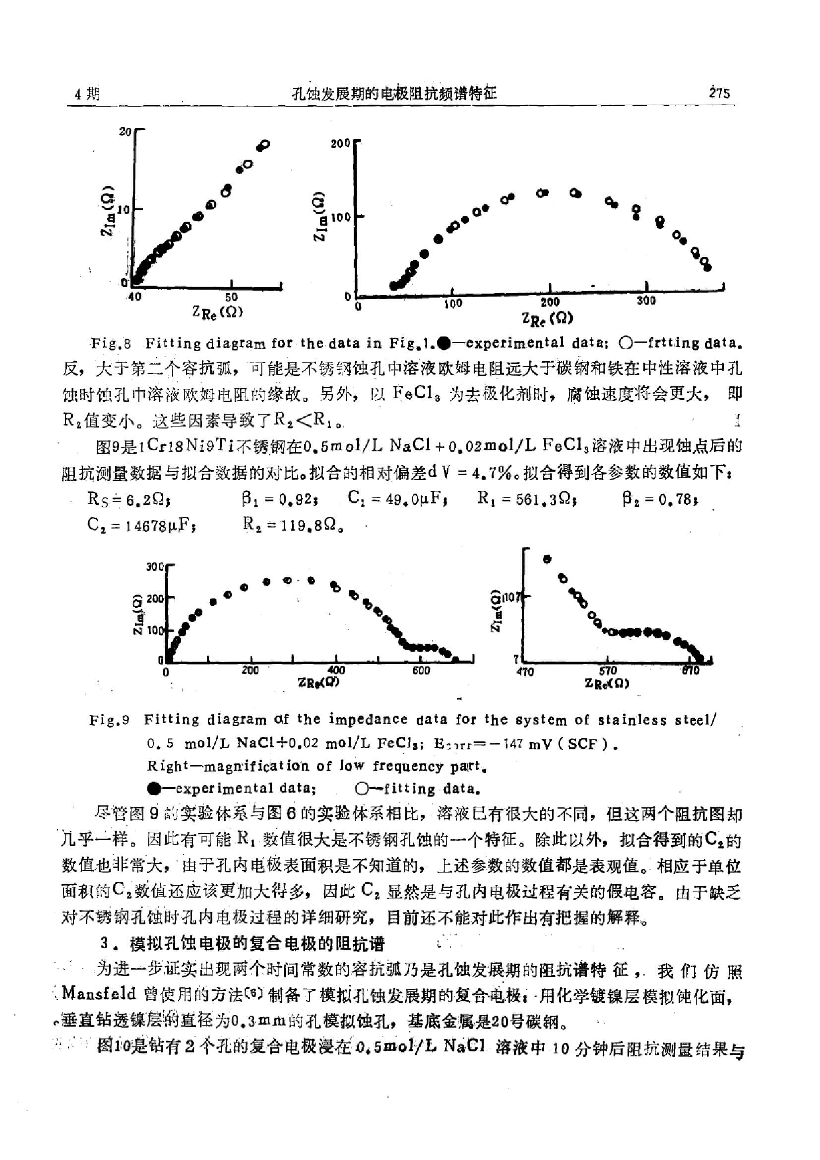 孔蚀发展期的电极阻抗频谱特征