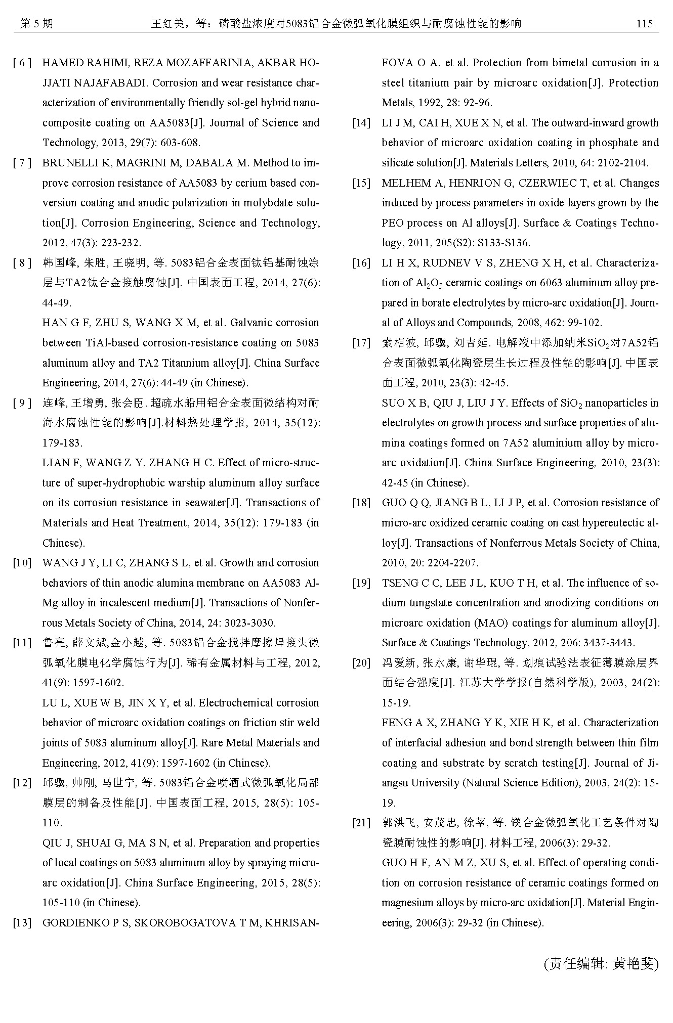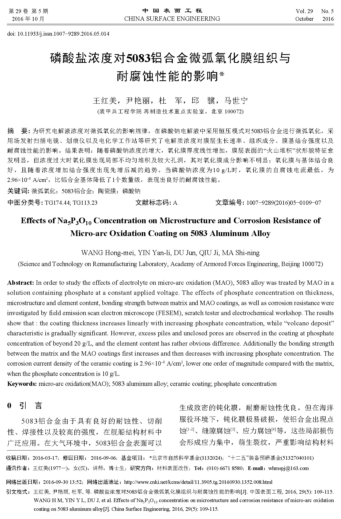 磷酸盐浓度对5083铝合金微弧氧化膜组织与耐腐蚀性能的影响