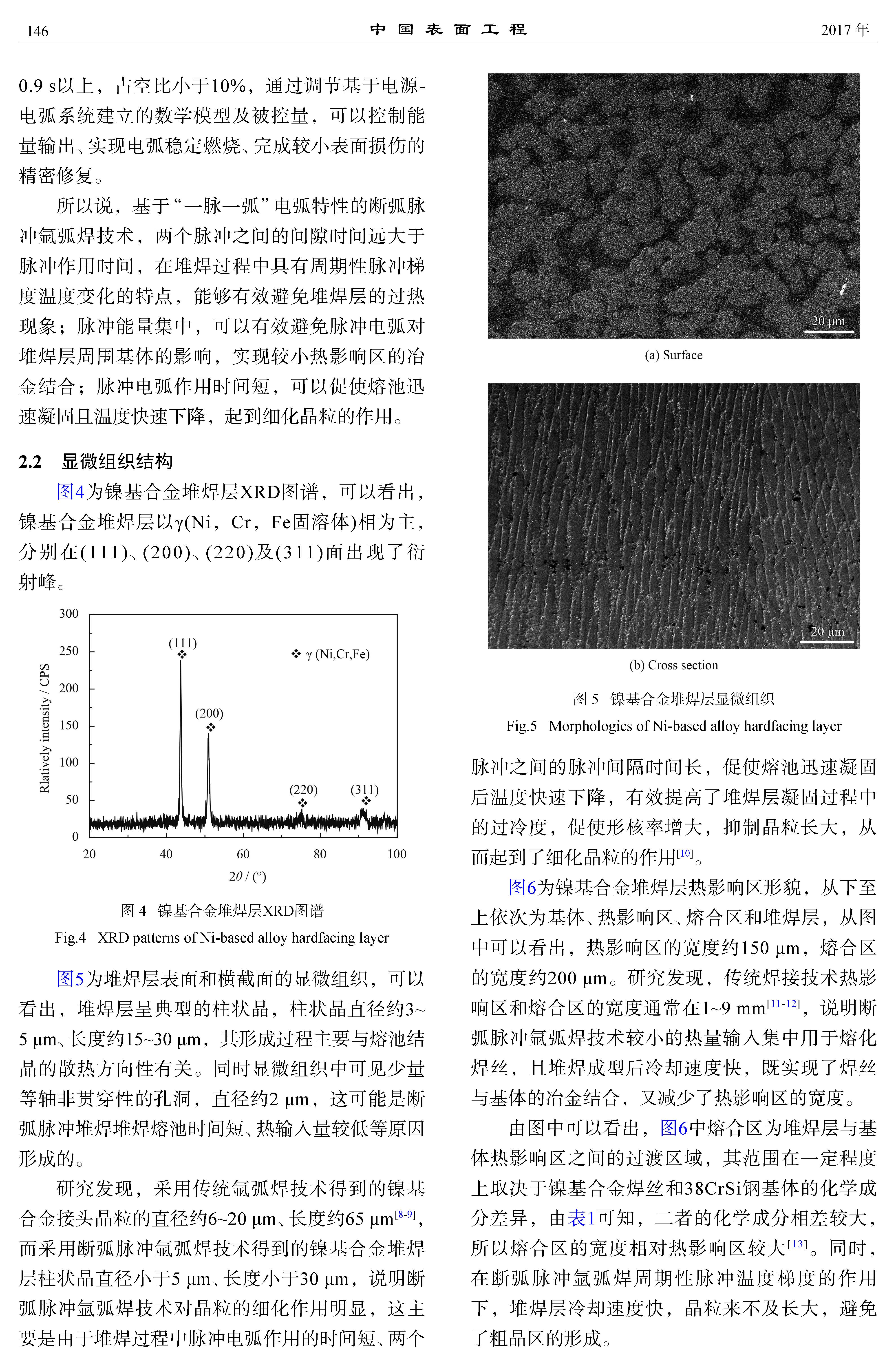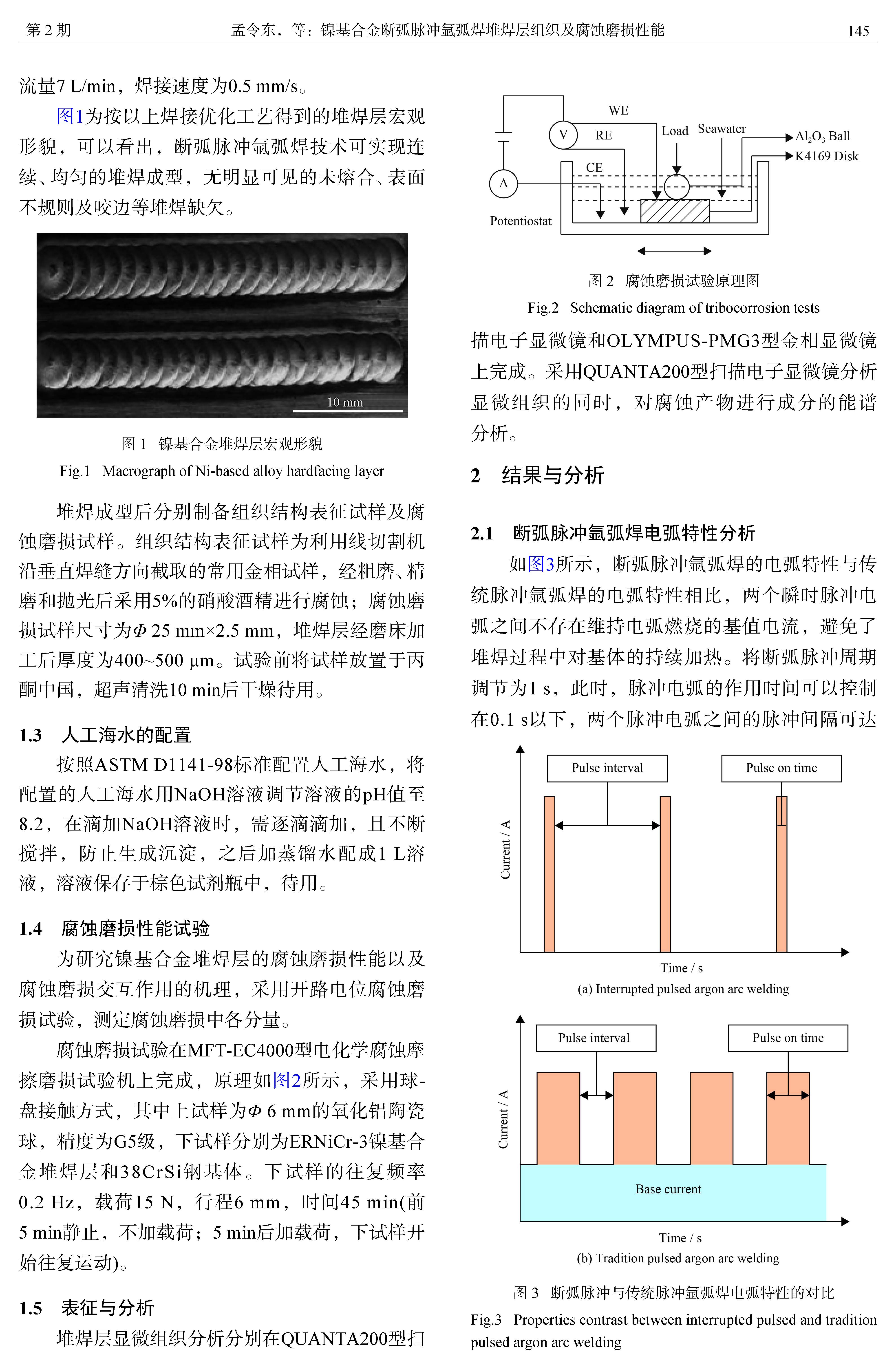 镍基合金断弧脉冲氩弧焊堆焊层组织及腐蚀磨损性能