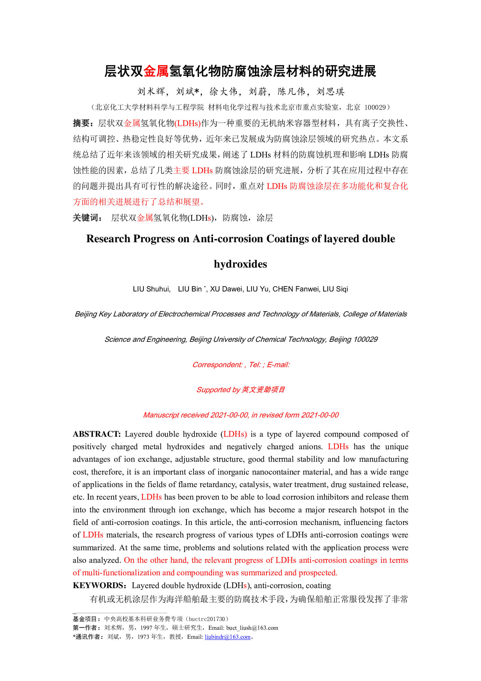 标签: 层状双金属氢氧化物(LDHs), 防腐蚀, 涂层