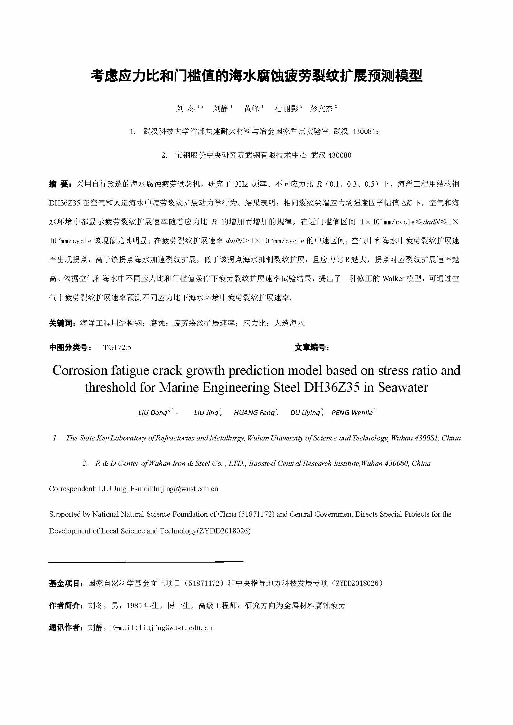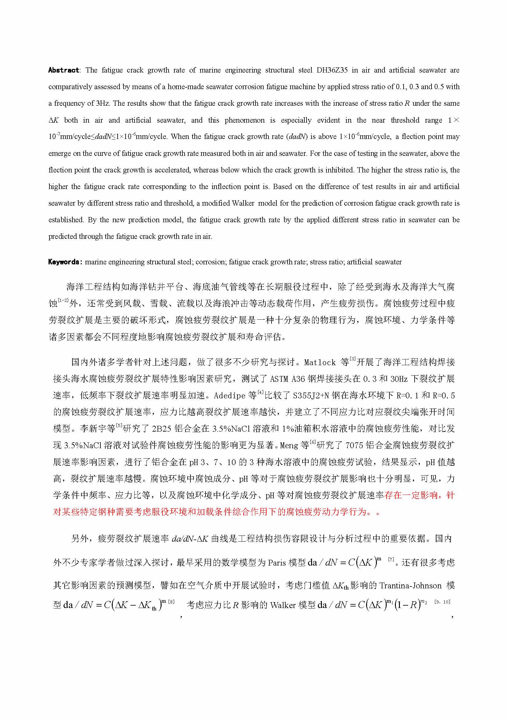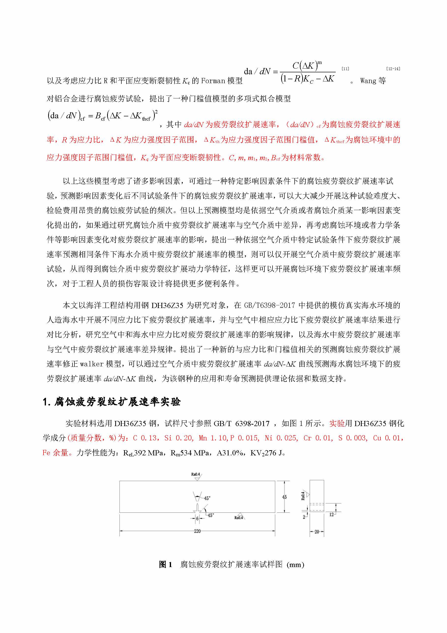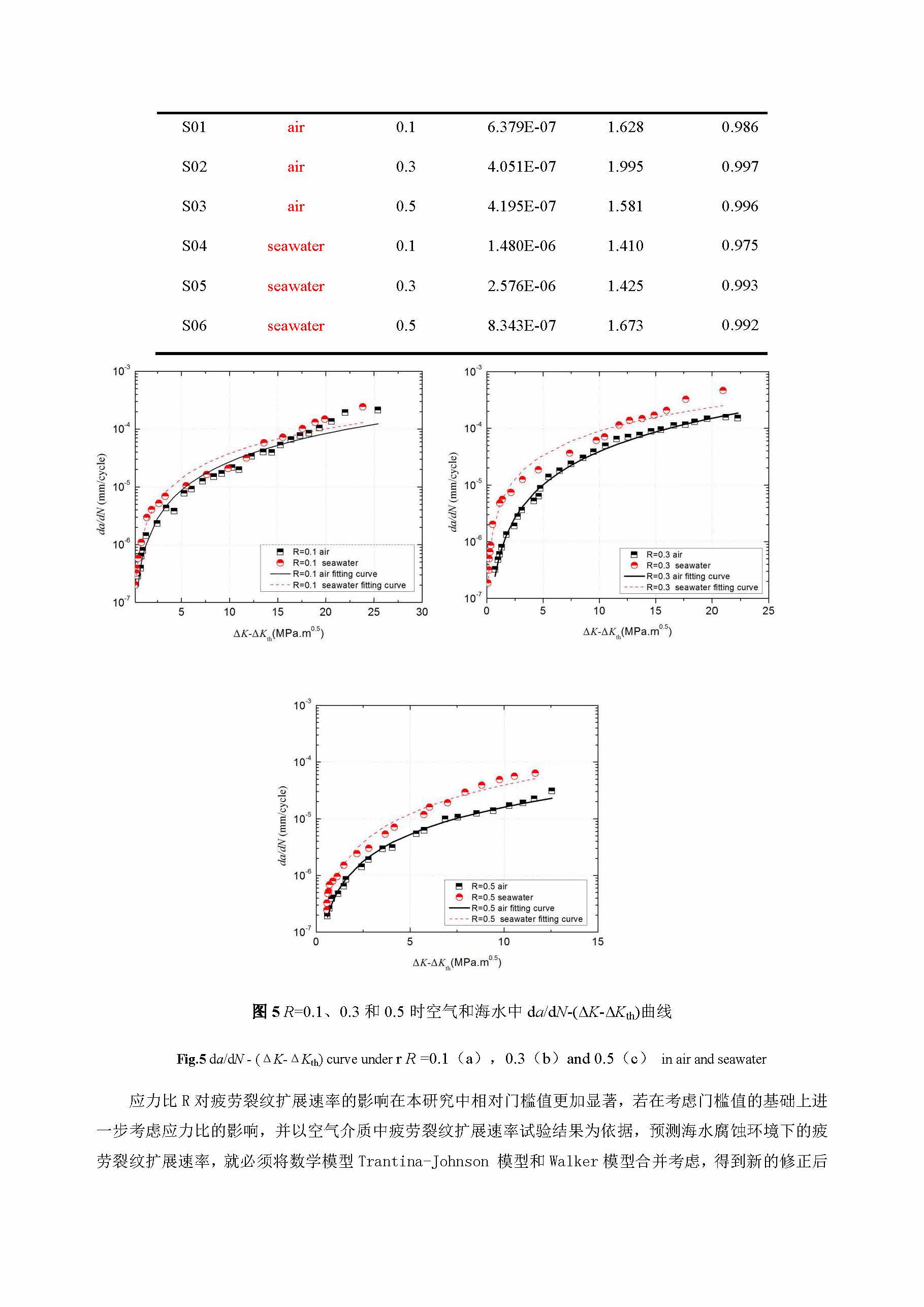 考虑应力比和门槛值的海水腐蚀疲劳裂纹扩展预测模型
