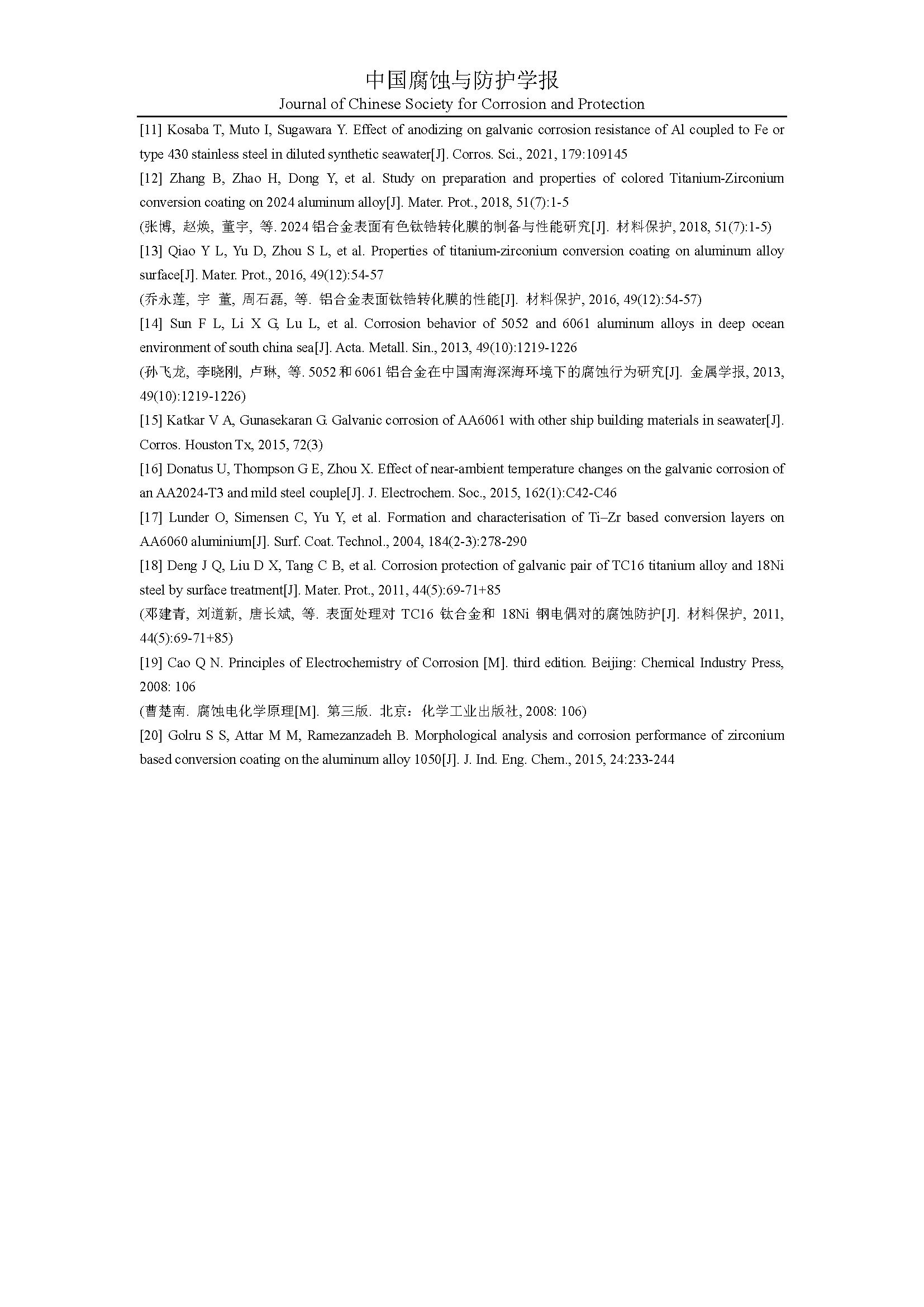 2021-08-19 14:42:10 作者:蔡建敏,关蕾,李雨 来源:中国腐蚀与防护学报 分享至: