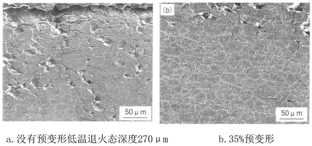 ①退火温度对600合金SCC行为的影响。高、低温退火对材料SCC的影响不明显。试验表明在较高温度下退火会使晶粒长大,碳化物全部溶解,但不能使晶界贫Cr区减小。轧制退火温度为925℃时,U-弯曲试样会发生最严重的开裂。因为采用的试验条件比高温纯水环境要苛刻得多,所以蒸汽发生器传热管在实际运行环境中的晶间腐蚀速率不会像模拟试验这样快。